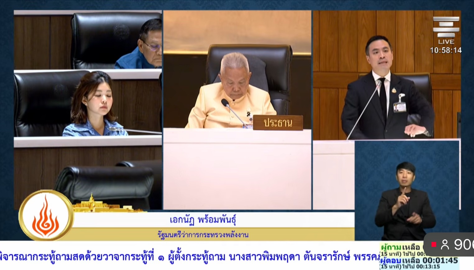 นอกจากนี้ นายเอกนัฏ  รัฐมนตรีว่าการกระทรวงพลังงาน ตอบกระทู้ถามสดต่อที่ประชุมสภาผู้แทนราษฎร ของนางสาวพิมพ์พฤดา ตันจรารักษ์ สส.อยุธยา พรรคภูมิใจไทย ถึงมาตรการเร่งด่วนในการรองรับค่าไฟ ที่จะปรับตัวสูงขึ้นจากผลกระทบที่ทำให้ราคาพลังงานปรับตัวสูงขึ้น จากเหตุการณ์สู้รบตะวันออกกลาง ซึ่งทำให้ราคาพลังงานโลกเพิ่มสูงขึ้น โดยเฉพาะก๊าซธรรมชาติเหลว (LNG) ที่ไทยต้องนำเข้าในสัดส่วน 30-40% เพื่อผลิตไฟฟ้า ว่า