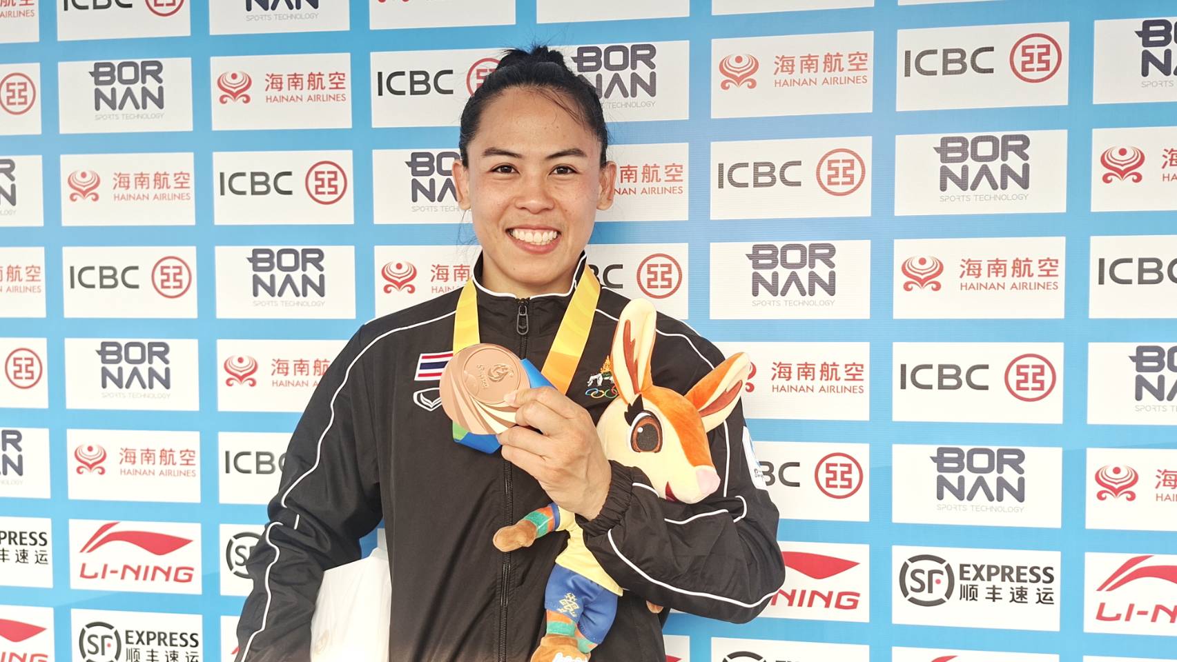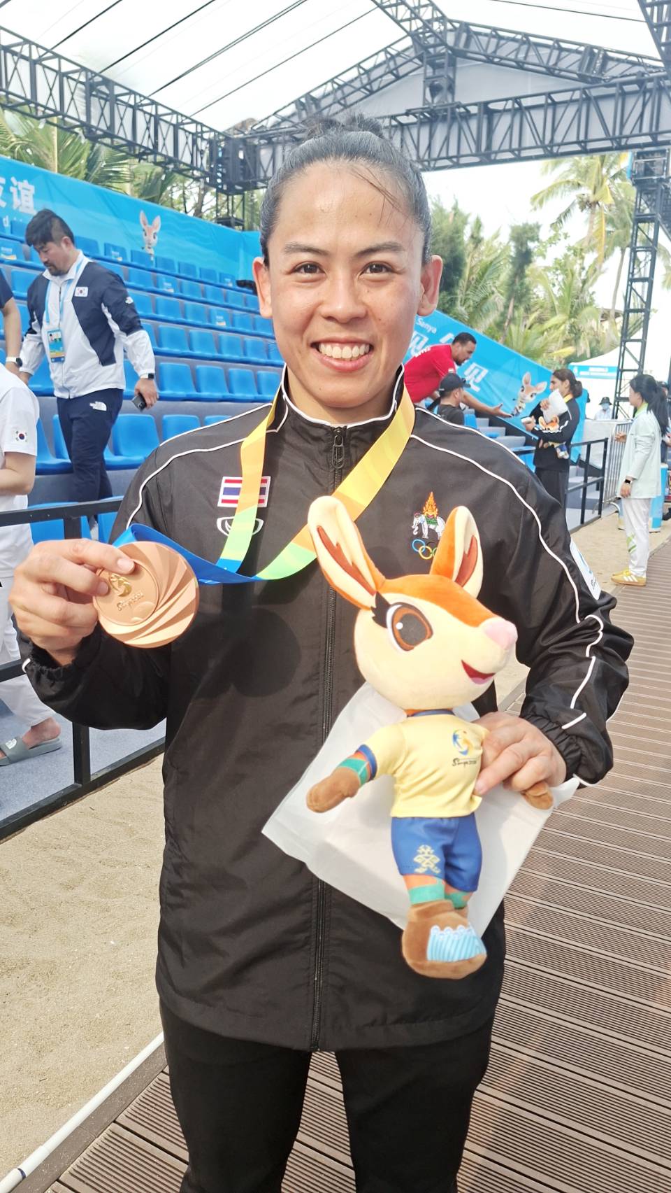 “อรนภา เสนาธรรม” คว้าเหรียญทองแดงแรกให้ทัพนักกีฬาไทยในศึกเอเชียนบีชเกมส์ ครั้งที่ 6 ที่ซานย่า ประเทศจีน หลังเอาชนะคู่แข่งฟิลิปปินส์ในรอบชิงทองแดงรุ่นน้ำหนัก 63 กก.หญิง เจ้าตัวรีบดีใจคว้าเหรียญรางวัลได้อีกครั้ง แม้จะเสียดายในรอบ 8 คนน่าจะทำได้ดีกว่านี้ พร้อมกลับไปฟิตร่างกายเตรียมสู้ศึกเอเชี่ยนเกมส์ที่ญี่ปุ่นต่อไป ด้านทีมวอลเลย์บอลชายหาดไทยโชว์เหนือคว้าชัยถ้วนหน้า