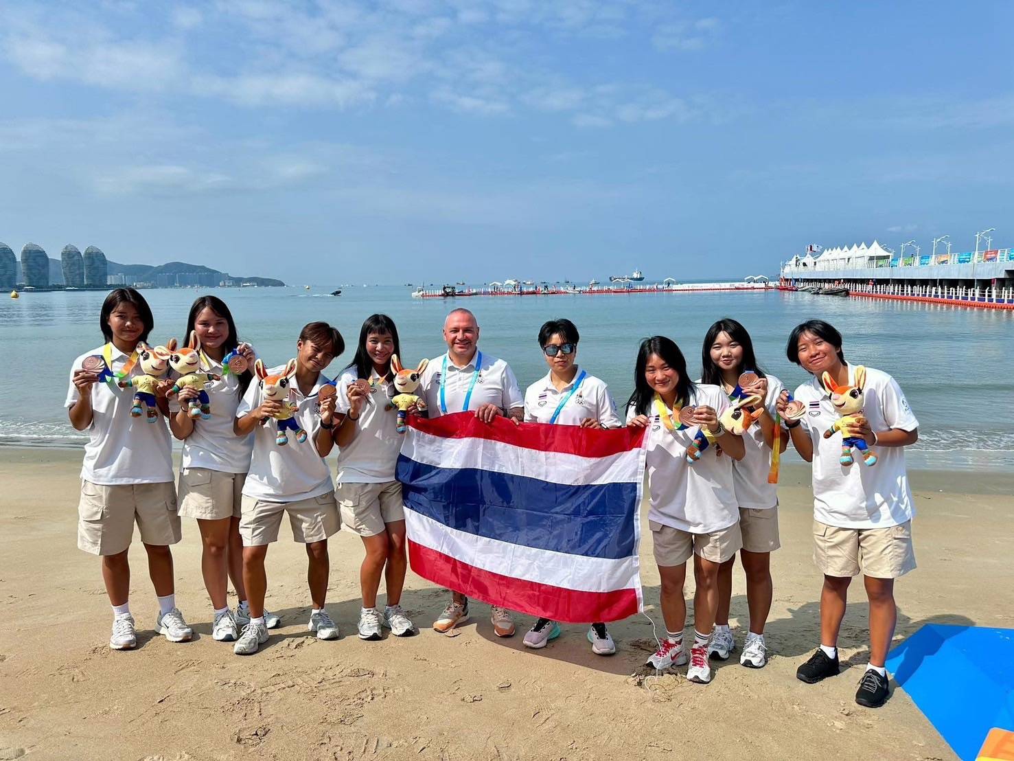 การแข่งขันกีฬาเอเชียนบีชเกมส์ ครั้งที่ 6 “ซานย่า 2026” ที่เมืองซานย่า มณฑลไห่หนาน ประเทศจีน วันที่ 25 เม.ย.69 หลังจากที่ทีมกรีฑาชายหาดไทยคว้า 2 เหรียญทองประเดิมให้ทัพกีฬาไทยแล้ว ล่าสุด ทีมเรือพายไทย ประเภทเรือมังกรก็สามารถคว้าเพิ่มมาได้อีก 1 เหรียญทอง กับ 1 เหรียญเงิน โดยเหรียญทองได้จาก ประเภทเรือ 10 ฝีพาย ระยะ 200 เมตรทีมชาย ที่เบียดเจ้าภาพจีนเข้าเส้นชัย ด้วยเวลา 45.500 วินาที ขณะที่ จีน เหรียญเงิน 45.801 วินาที และ เหรียญทองแดง ไต้หวัน 47.972 วินาที