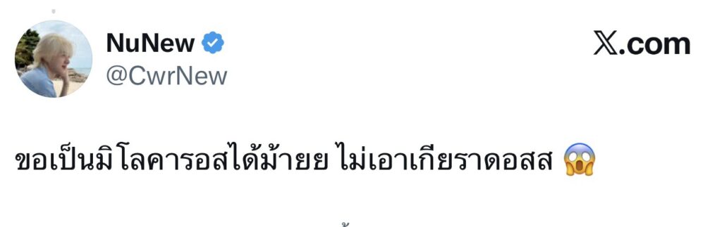 ซึ่งทางด้าน “นุนิว“ ก็เข้ามาตอบกลับน่ารักว่า ”ขอเป็นมิโคลารอสได้ม้ายย ไม่เอาเกียราดอสส“