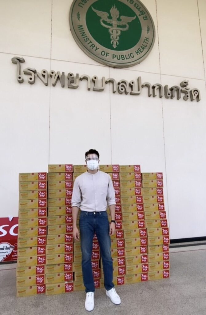 พระเอกหนุ่มสุดฮอต “มิกค์ ทองระย้า” ขอเป็นส่วนหนึ่งในการช่วยเหลือสังคมในภาวะวิกฤตโควิด 19 ที่กำลังระบาดอย่างหนักในช่วงเวลานี้ โดยได้ส่งมอบน้ำนมถั่วเหลือง บีเอสซี ซอย จำนวน 5,000 กล่อง ให้กับทางโรงพยาบาลปากเกร็ด 2 เพื่อเป็นประโยชน์แก่ผู้ป่วยโควิด 19 และเป็นกำลังใจให้กับบุคลากรทางการแพทย์ และพยาบาล ทั้งในส่วนของโรงพยาบาล และโรงพยาบาลสนาม ซึ่งงานนี้พระเอกหนุ่มเผยว่า