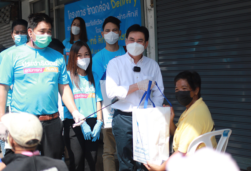 นายจุรินทร์ ลักษณวิศิษฎ์ รองนายกรัฐมนตรี และรัฐมนตรีว่าการกระทรวงพาณิชย์ ในหัวหน้าพรรคประชาธิปัตย์ พร้อมด้วยนายองอาจ คล้ามไพบูลย์ รองหัวหน้าพรรคประชาธิปัตย์ และ พล.ต.ต.วิชัย สังข์ประไพ อดีต ผู้สมัคร ส.ส. กทม. พรรคประชาธิปัตย์ ลงพื้นที่เขตหลักสี่ กรุงเทพฯ มอบเครื่องยังชีพ และ ข้าวกล่อง จำนวน 200 กล่อง ช่วยประชาชนที่ได้รับผลกระทบจากภัยโควิด-19 ผ่านผู้นำชุมชนไปยังครอบครัวผู้ติดเชื้อ และหลังจากนี้ จะส่งมอบข้าใส่สาร ไข่ไก่ ปลากระป๋อง และของใช้จำเป็นส่งผ่านเดริเวอรี่ถึงบ้าน เพื่ออำนวยความสะดวกให้ครองครัวผู้ที่ได้รับเชื่อและต้องกักตัว และเพื่อป้องกันการแพร่เชื้อ