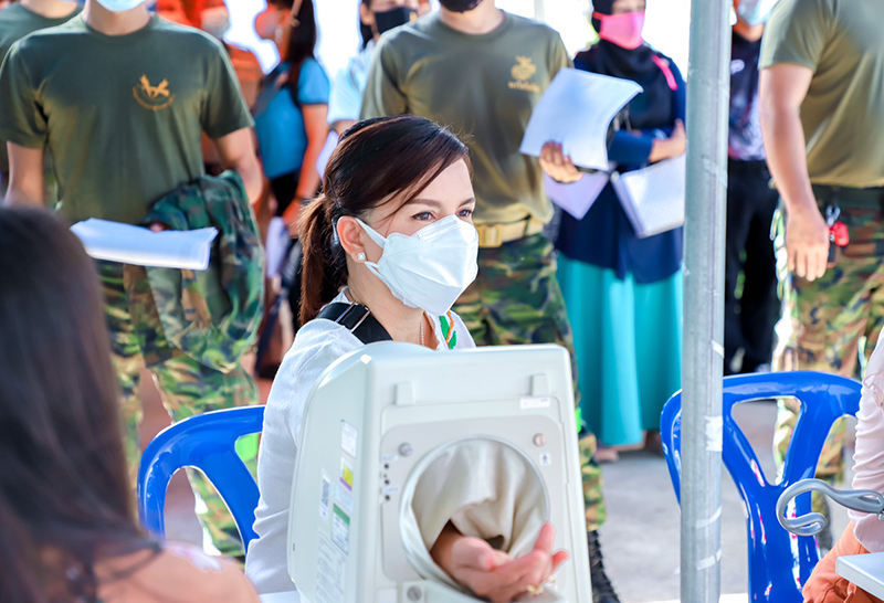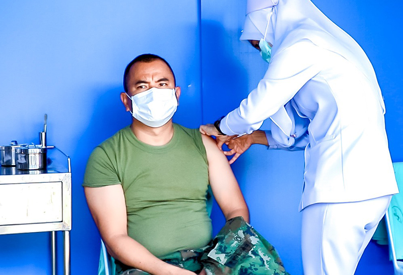 บุคลากรทางการแพทย์ เจ้าหน้าที่ด่านหน้า นราธิวาส ทยอยฉีดวัคซีนซิโนแวค ลอต 4 จำนวน 541 ราย ขณะตั้งจุดตรวจซักประวัติ