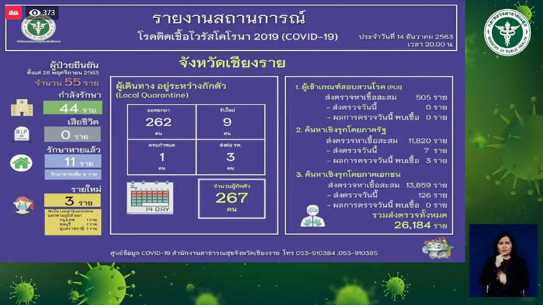 วันนี้พบผู้ติดเชื้อที่รอยืนยันอีก 3 ราย ขณะนี้รอผลแล็บแต่ทั้งหมด เป็นผู้ป่วยที่อยู่ในสถานกักกันโรคของรัฐ ทำให้ไม่กระทบกับประชาชนทั่วไป สำหรับการจัดงานรื่นเริง กินเลี้ยงโต๊ะจีน หรือ คอนเสิร์ต ในช่วงปีใหม่นั้น ยืนยันว่า สามารถจัดได้ แต่ต้องมีการขออนุญาตผู้เกี่ยวข้องให้ถูกต้อง รวมถึงต้องเคร่งครัดมาตรการควบคุมโรคเช่น การจัดสถานที่ให้เว้นระยะห่าง, สวมใส่หน้ากากอนามัย และ มีจุดคัดกรองโรค