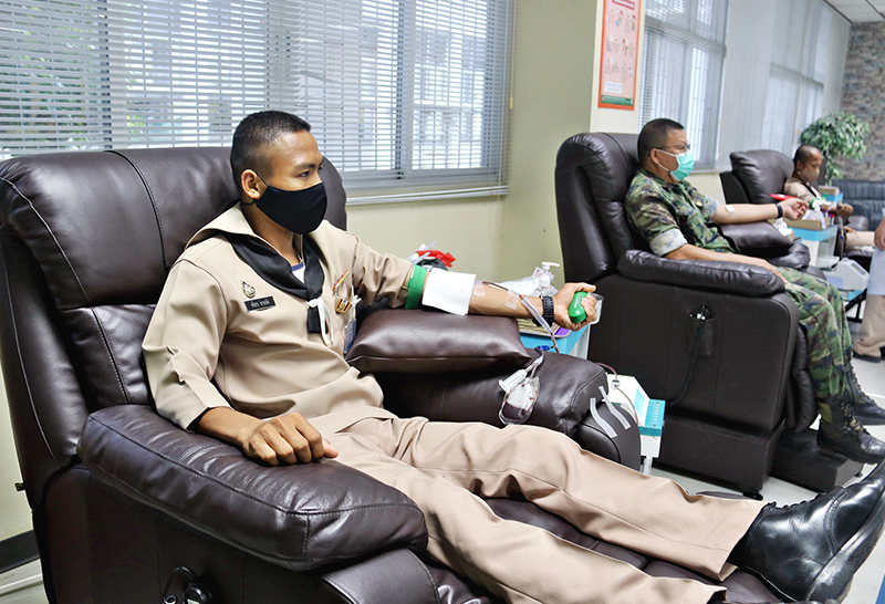กำลังพลกองเรือยุทธการร่วมบริจาคโลหิต ฝ่าวิกฤตชาติโควิด-19 เนื่องในวันอาภากร หลังขาดแคลนเลือด