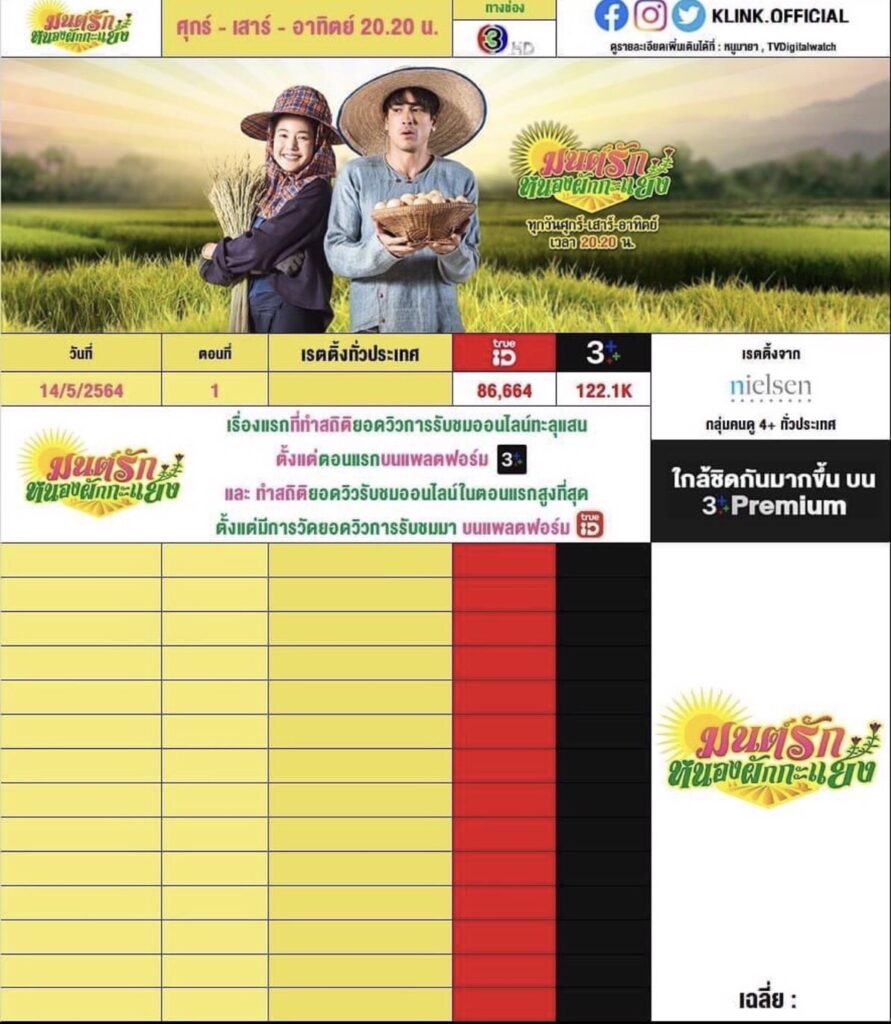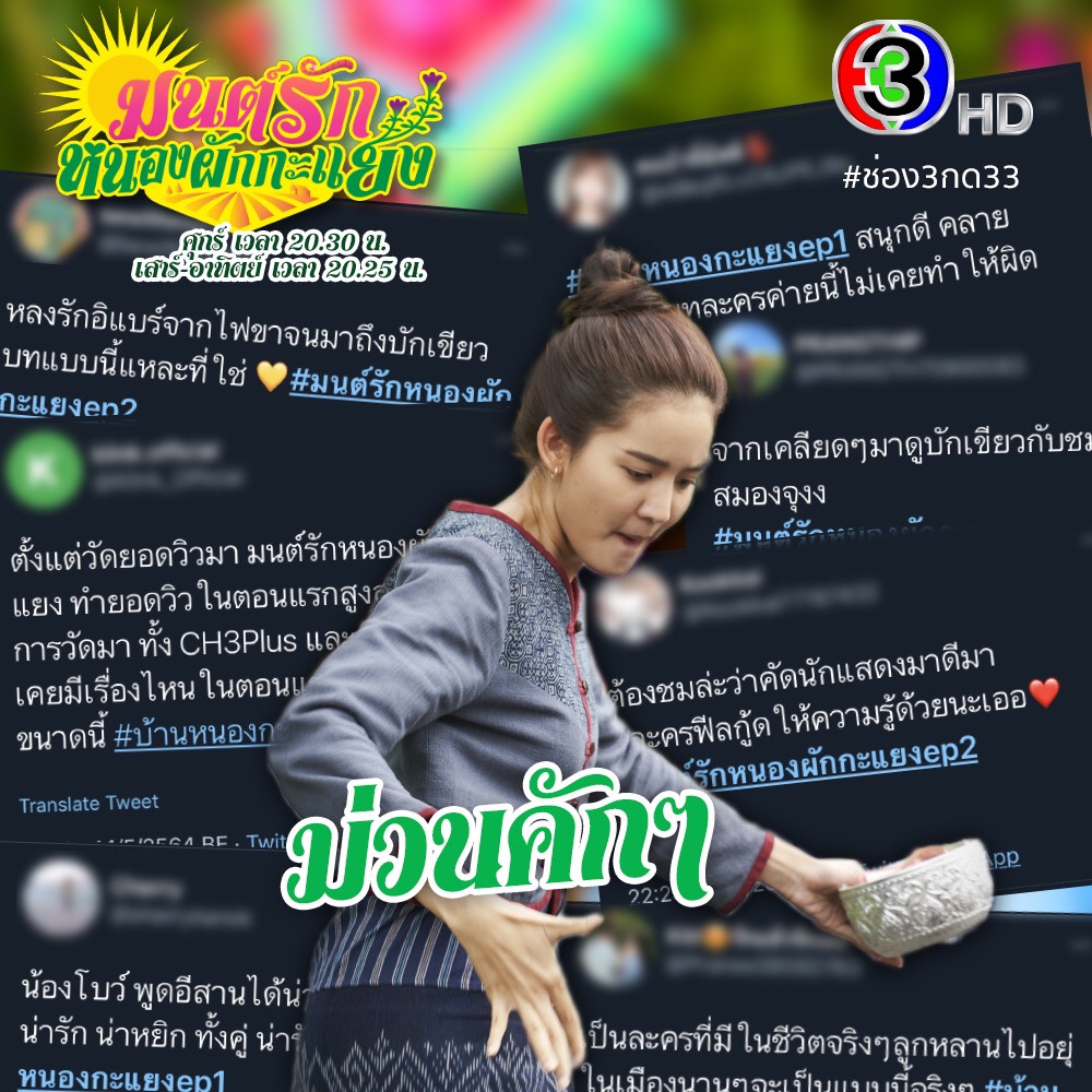เรียกว่าตั้งแต่ออนแอร์มากระแสยังคงฮอตสู้แดดไม่เลิกสำหรับละครอารมณ์ดี “มนต์รักหนองผักกะแยง” ละครที่ชวนแฟนละครพักสมองมายิ้มหัวเราะคลายความเครียดช่วงสถานการณ์โควิด-19 ด้วยความเป็นละครแนวฟีลกู๊ดดูแล้วอบอุ่นหัวใจชวนคิดถึงบ้าน หลังจากออกอากาศให้ได้รับชมกระแสก็แรงฮิตขึ้นติดท็อป 5 เทรนด์ทวิตเตอร์ และนอกจากนี้ยังทำสถิติดีด้วยยอดรับชมออนไลน์ทาง CH3Plus ทะลุแสนอย่างต่อเนื่องถึงสองวันติด! ถือเป็นละครเรื่องแรกที่ทำยอดไว้เดือดจริงๆ