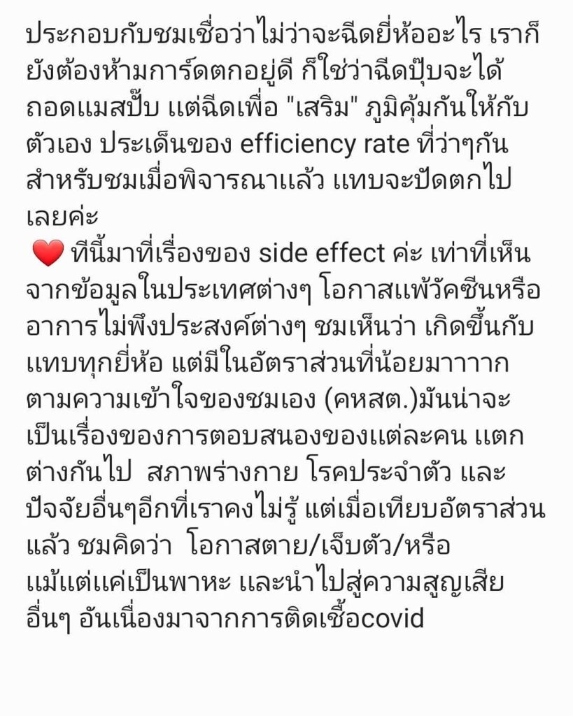 เป็นดาราอีกหนึ่งคนที่ออกมารีวิว หลังจากตัดสินใจเข้ารับการฉีดวัคซีน Sinovac ไปเป็นที่เรียบร้อย สำหรับสาวชมพู่ อารยา ซึ่งงานนี้เจ้าตัวได้โพสต์ข้อความอธิบายยาวเหยียดถึงเหตุผลการตัดสินใจเลือกฉีดวัคซีนดังกล่าว หลังมีหลายคนตั้งข้อสงสัยและยังกลัวกับผลข้างเคียงของวัคซีนยี่ห้อนี้ เน่าองจากเป็นที่วิพากษ์วิจารณ์ถึงประสิทธิภาพ และผลข้างเคียงที่อาจจะเกิดขึ้น