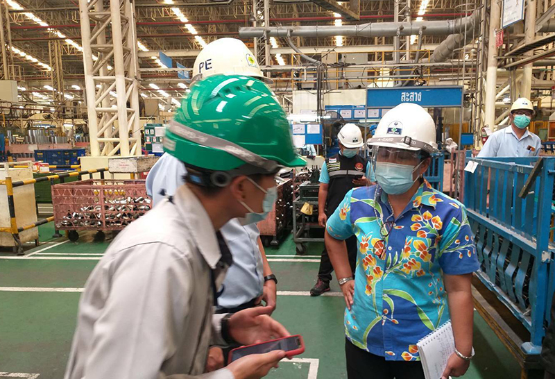 จึงได้จัดทำประกาศ เรื่อง มาตรการเฝ้าระวังและป้องกันการแพร่ระบาดของโรคติดเชื้อไวรัสโคโรนา 2019 (COVID-19) ในสถานประกอบกิจการ ฉบับลงวันที่ 16 พฤษภาคม พ.ศ.2564 ขอความร่วมมือสถานประกอบกิจการ นายจ้าง และลูกจ้าง ปฏิบัติตามมาตรการเฝ้าระวังและป้องกันฯ อาทิเช่น ห้ามเคลื่อนย้ายแรงงานต่างด้าว ทั้งเข้าไปและออกจากพื้นที่ที่ได้รับอนุญาตทำงานและพื้นที่ที่มีการแพร่ระบาดของโรคติดเชื้อไวรัส จัดให้มีมาตรการเฝ้าระวังและตรวจสอบคัดกรองในสถานประกอบกิจการ อาทิ การตรวจวัดอุณหภูมิร่างกาย การจัดหาแอลกอฮอล์ล้างมือ การควบคุมให้ลูกจ้างสวมหน้ากากอนามัย และประชาสัมพันธ์ให้ลูกจ้างทราบวิธีการป้องกันโรคติดเชื้อไวรัสโคโรนาในเบื้องต้นด้วยตัวเอง เป็นต้น ทั้งนี้ได้ส่งพนักงานตรวจแรงงานประสานทำความเข้าใจกับเจ้าหน้าที่ความปลอดภัยในการทำงาน (จป.) ของสถานประกอบการ ทำหน้าที่ดูแลเฝ้าระวังคัดกรองไม่ให้เกิดการแพร่ระบาดของโรคติดเชื้อดังกล่าวได้