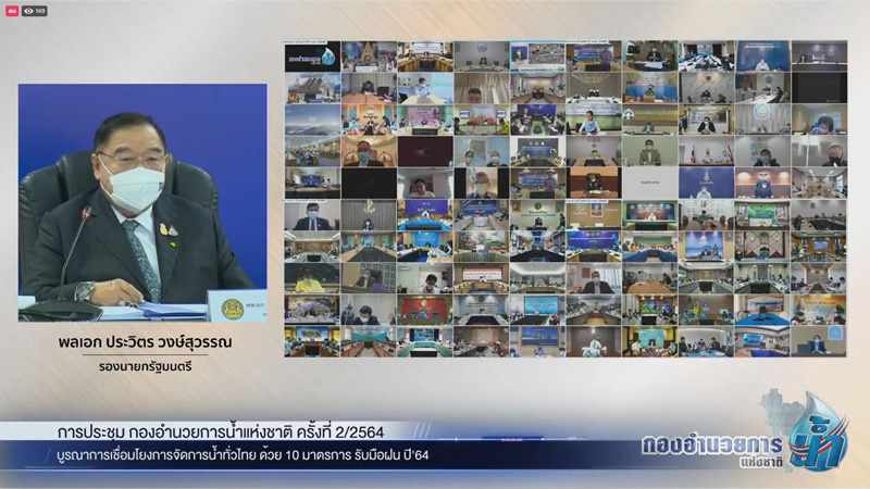 เช้าวันนี้(19 พ.ค.64) ที่สำนักงานทรัพยากรน้ำแห่งชาติ พลเอก ประวิตร วงษ์สุวรรณรองนายกรัฐมนตรี เป็นประธานในการประชุมกองอำนวยการน้ำแห่งชาติ ครั้งที่ 2/2564 “บูรณาการเชื่อมโยงจัดการน้ำทั่วไทยด้วย 10 มาตรการรับมือฝน 64” โดยมี นายประพิศจันทร์มา อธิบดีกรมชลประทาน เข้าร่วมประชุม และดร.ทวีศักดิ์ ธนเดโชพล รองอธิบดีกรมชลประทาน และผู้เกี่ยวข้อง เข้าร่วมประชุมผ่านระบบ Video Conference เพื่อนำเสนอผลสัมฤทธิ์ของการจัดการน้ำในช่วงฤดูแล้งปี 63/64 และความพร้อมดำเนินการตาม 10 มาตรการรับมือช่วงฤดูฝนปี 64 รวมถึงหารือร่วมกับผู้ว่าราชการจังหวัด 76 จังหวัดขับเคลื่อนการบริหารจัดการน้ำในระดับพื้นที่