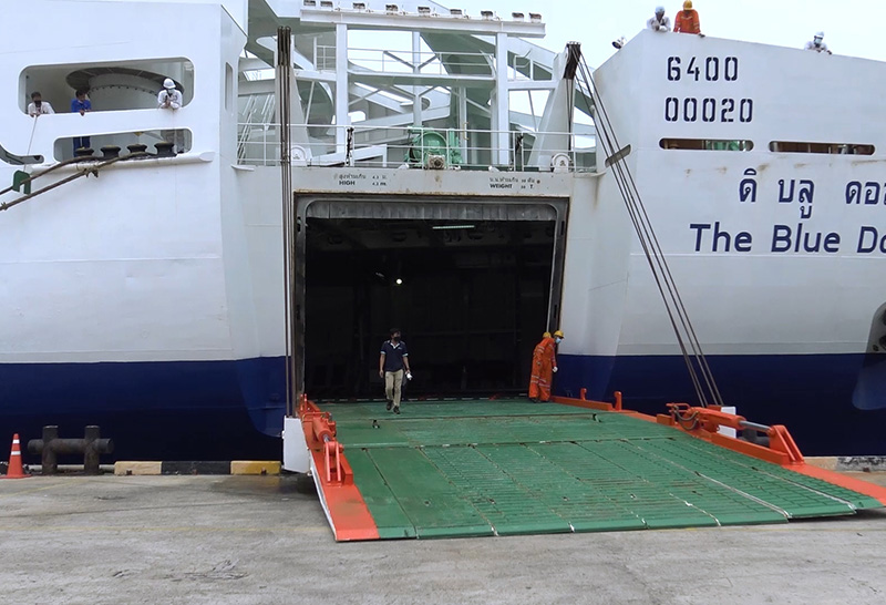 สำหรับรายละเอียดของเรือเฟอร์รี่ดิ บลู ดอลฟิน ของบริษัท ซี ฮอร์ส เฟอร์รี่ จำกัด มีขนาด 7,003 ตันกรอสส์ ความยาว 136.6 เมตร ความเร็ว 17 น็อต หรือ 31.48 กิโลเมตรต่อชั่วโมงรองรับรถบรรทุกได้ประมาณ 60 คัน รถยนต์ส่วนตัว 20 คัน ผู้โดยสารประมาณ 586 คน จะใช้เวลาในการเดินทางจากท่าเรือจุกเสม็ด หรือท่าเรือพาณิชย์สัตหีบ จังหวัดชลบุรี ถึง จังหวัดสงขลา ระยะเวลาเพียง 18-20 ชั่วโมง ซึ่งเร็วกว่าทางรถยนต์ที่ใช้เวลาเดินทางประมาณ 23-24 ชั่วโมง รองรับการขนส่งในอนาคต