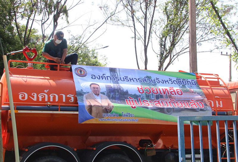 อบจ.ชัยภูมินำรถน้ำช่วยชาวบ้านหลังขาดน้ำนาน3เดือน