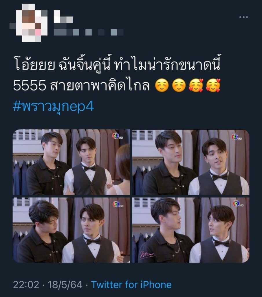 อย่าช้า!! ตามไปจิ้น ตามไปฟินให้จั๊กจี้หัวใจกันได้ในละคร “พราวมุก” ทุกวันจันทร์ – อังคาร เวลา 20.30 น. ทางช่อง 3 กด 33 หรือติดตามความเคลื่อนไหวได้ที่ CH3Thailand และแอพพลิเคชั่น CH3 Plus