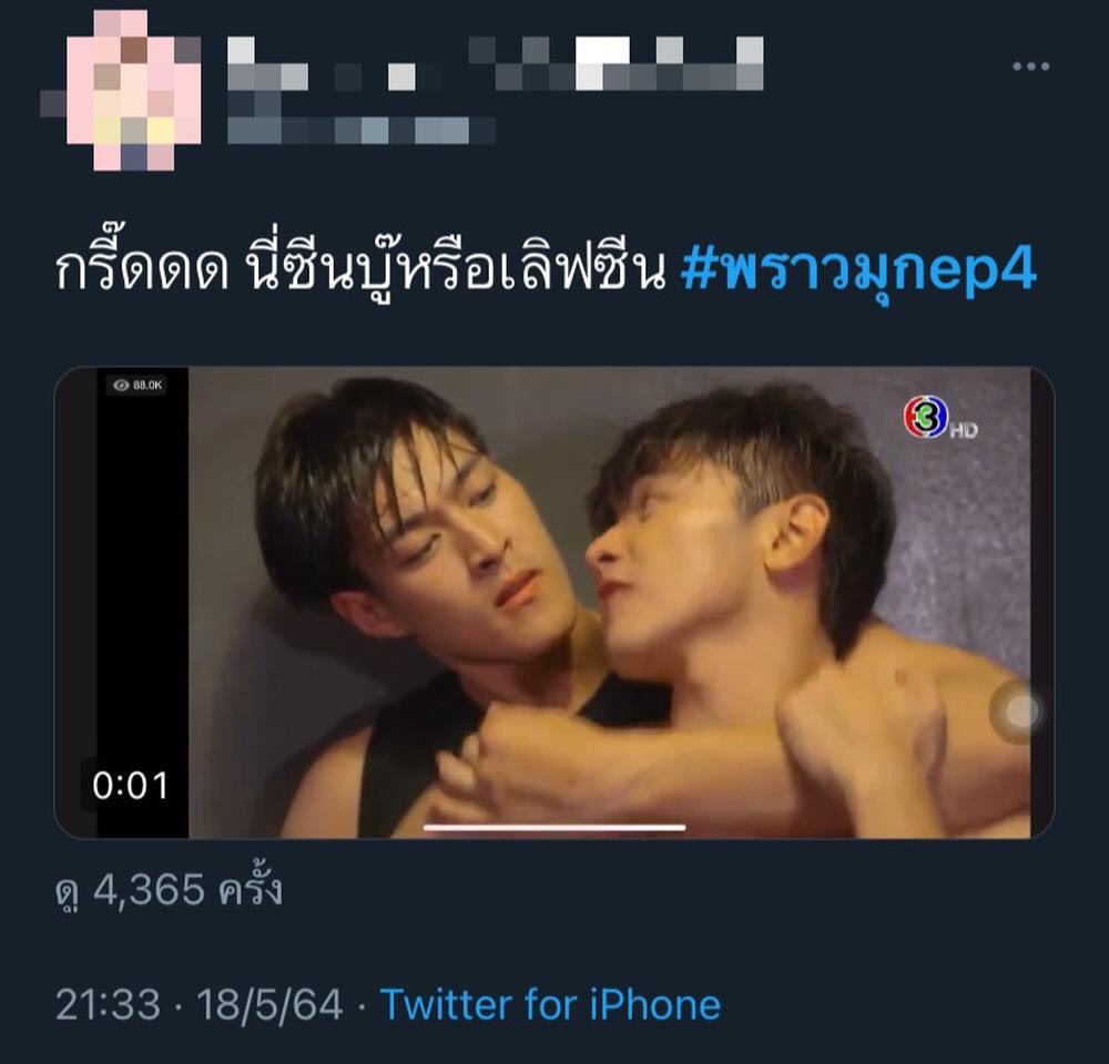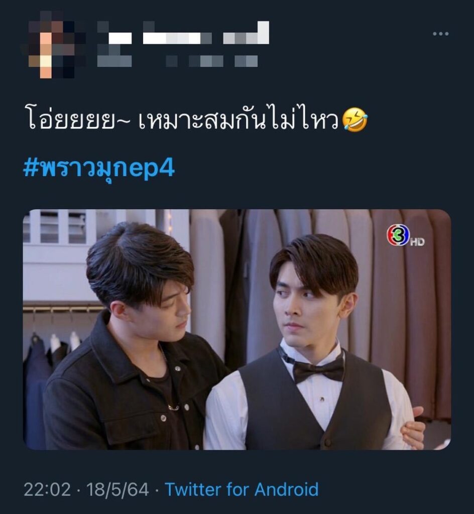 ฟากหนุ่มหล่อมองแล้วใจละลายอย่าง “กระทิง ขุนณรงค์” เผยว่า “ครั้งแรกที่อ่านบทเราก็ไม่คิดว่ามันจะออกมาจิ้นขนาดนั้น แต่จริงๆ มันก็ไม่ได้เป็นเชิงคู่วายขนาดนั้น ผมคิดว่าในเรื่องมองเป็นการซัพพอร์ตเพื่อนมากกว่า เรื่องการพูดคุยทำการบ้านเราก็ทำการบ้านกันมาคนละส่วนอยู่แล้ว และพอมาถึงหน้างานเราก็มาปรึกษากันว่าเล่นแบบไหนดี แต่ส่วนใหญ่มันจะเป็นอิมโพรไวส์เลย ด้วยความที่เราเป็นเพื่อนกันอยู่แล้วมันก็เลยเล่นง่าย แต่พออยู่ใกล้ๆ กัน ฉากที่แบบมันต้องจูบกัน มันก็เล่นได้แหละ แต่พอถึงเวลาคัทมันก็แบบจะมีจั๊กจี้กันบ้าง ขนลุกกันบ้าง (หัวเราะ) แต่เวลาที่เล่น ภณ มีสมาธิดีอยู่แล้ว มันก็เลยทำให้เราไม่หลุด แต่ความขนลุกมันก็เป็นความรู้สึกในฉากอยู่แล้ว เพราะในเรื่องเราต่างคนต่างเป็นผู้ชายด้วย มันก็เลยลงตัวพอดี แฟนๆ ที่จิ้นกระทิง ภณ เราก็ดีใจมาก ก็ติดตาม ภณ กระทิง กันได้ครับในละคร พราวมุก อาจจะมีอะไรให้แฟนๆ ได้จิ้นอีกครับ”