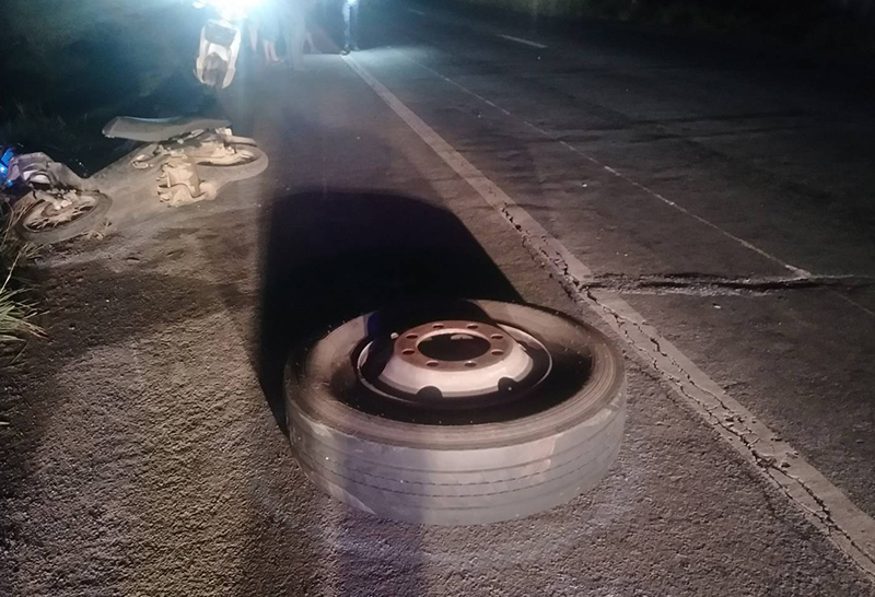 จากการสอบถามนายสมพร วัฒนาศิลป์ อายุ 51 ปี ชาวอำเภอพิมาย ซึ่งเป็นคนขับรถกระบะ เล่าว่า กำลังจะขับรถไปส่งพี่สาวในตัวเมืองจังหวัดนครราชสีมา แต่ระหว่างที่ขับรถมาถึงจุดเกิดเหตุ ได้มีล้อของรถบรรทุกสิบล้อไม่รู้มาจากคันไหน หลุดพุ่งข้ามเลนมาชนกับรถกระบะของตนเข้าอย่างจัง โชคดีที่ขับรถมาไม่เร็วมากนัก จึงทำให้ไม่มีใครได้รับบาดเจ็บ แต่สภาพรถพังเสียหายยับ ในขณะที่ล้อรถบรรทุกสิบล้ออีกล้อหนึ่ง ได้หลุดไปพุ่งชนรถจักรยานยนต์ของอาสากู้ภัยฯ ที่กำลังขับอยู่บนถนนฝั่งตรงข้าม ทำให้รถล้มได้รับบาดเจ็บ ซึ่งเจ้าหน้าที่ตำรวจจะได้สอบสวนคนขับรถบรรทุกสิบล้อในที่เกิดเหตุอีกครั้ง พร้อมกับสอบปากคำพยานเพิ่มเติม เพื่อหาสาเหตุที่ชัดเจน ก่อนดำเนินคดีตามกฎหมายต่อไป