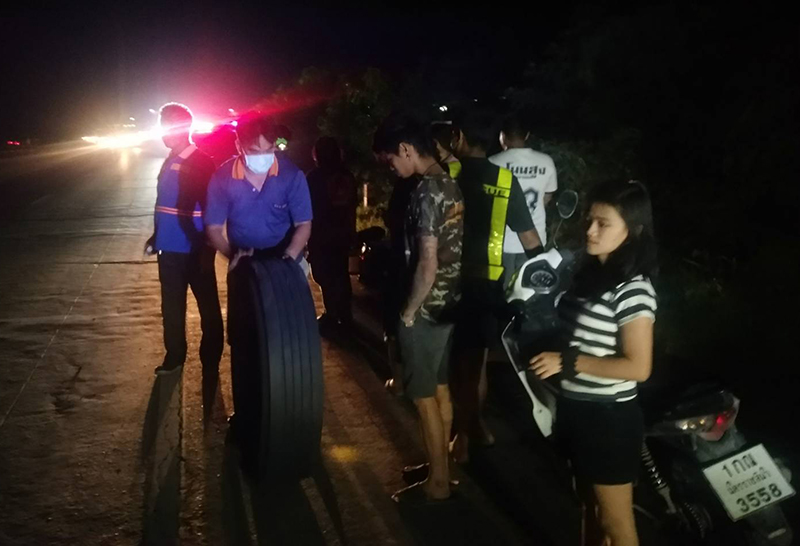 จากการสอบถามนายสมพร วัฒนาศิลป์ อายุ 51 ปี ชาวอำเภอพิมาย ซึ่งเป็นคนขับรถกระบะ เล่าว่า กำลังจะขับรถไปส่งพี่สาวในตัวเมืองจังหวัดนครราชสีมา แต่ระหว่างที่ขับรถมาถึงจุดเกิดเหตุ ได้มีล้อของรถบรรทุกสิบล้อไม่รู้มาจากคันไหน หลุดพุ่งข้ามเลนมาชนกับรถกระบะของตนเข้าอย่างจัง โชคดีที่ขับรถมาไม่เร็วมากนัก จึงทำให้ไม่มีใครได้รับบาดเจ็บ แต่สภาพรถพังเสียหายยับ ในขณะที่ล้อรถบรรทุกสิบล้ออีกล้อหนึ่ง ได้หลุดไปพุ่งชนรถจักรยานยนต์ของอาสากู้ภัยฯ ที่กำลังขับอยู่บนถนนฝั่งตรงข้าม ทำให้รถล้มได้รับบาดเจ็บ ซึ่งเจ้าหน้าที่ตำรวจจะได้สอบสวนคนขับรถบรรทุกสิบล้อในที่เกิดเหตุอีกครั้ง พร้อมกับสอบปากคำพยานเพิ่มเติม เพื่อหาสาเหตุที่ชัดเจน ก่อนดำเนินคดีตามกฎหมายต่อไป