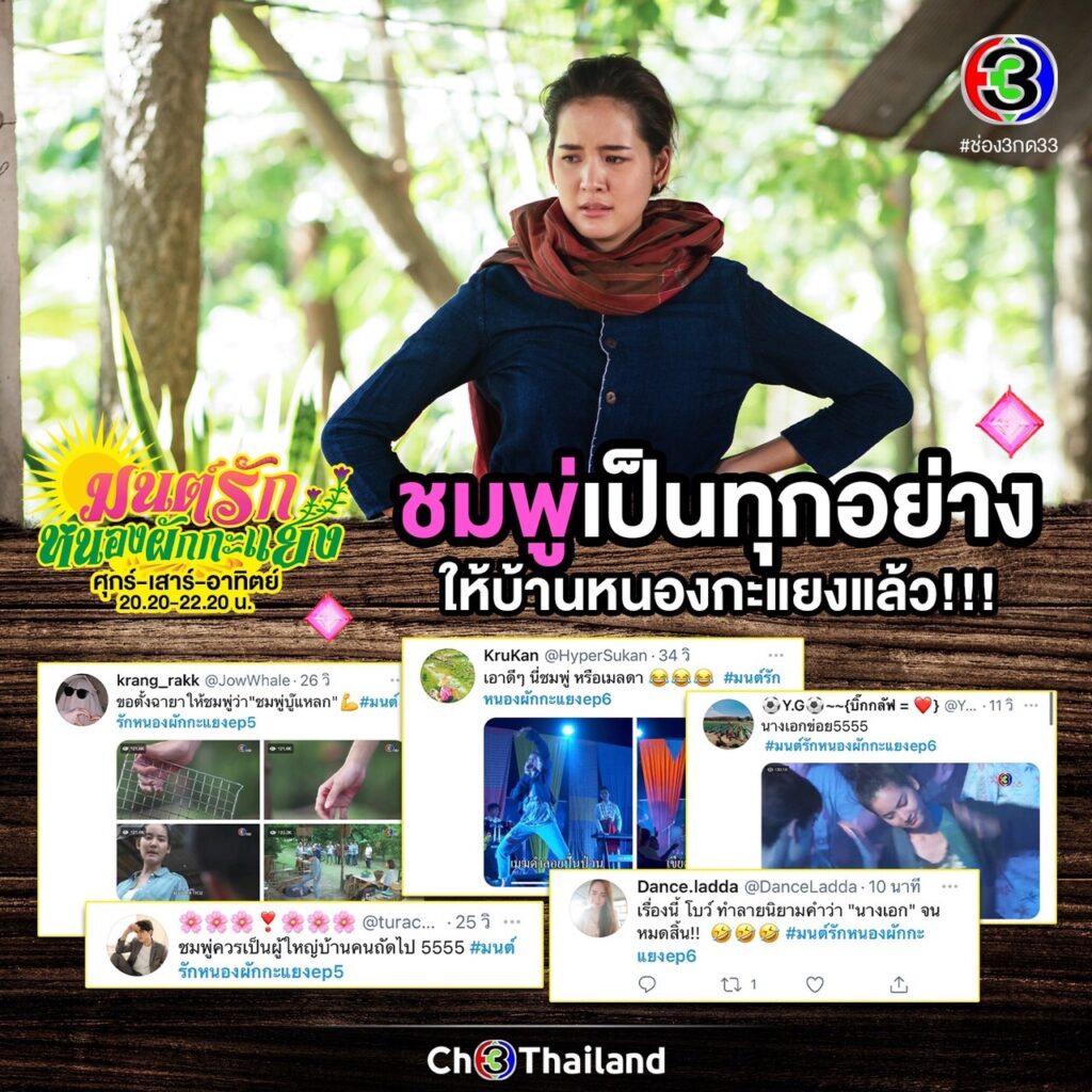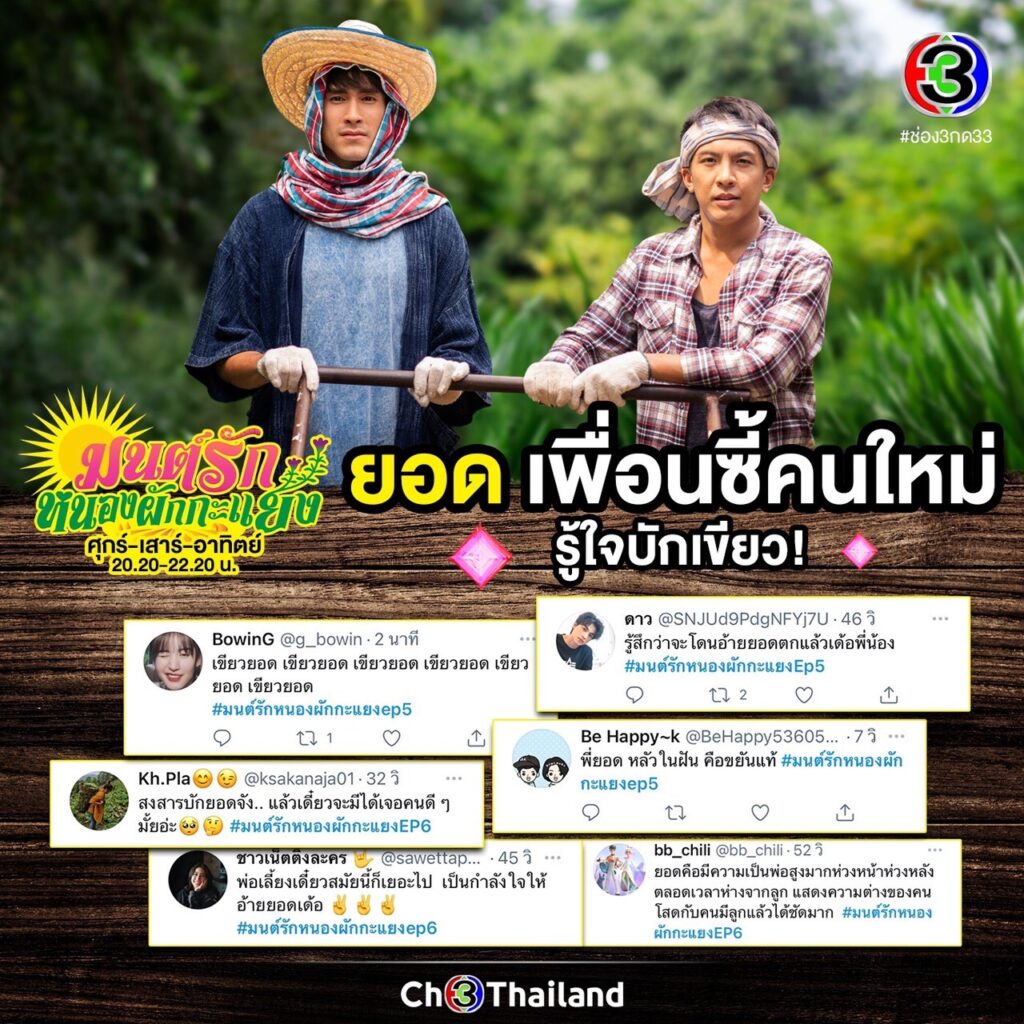 ลีลาความสนุกที่ต้องขอบอกต่อและสกิลการแสดงที่หลายคนอิน ใครที่พลาดไปตามม่วนกันด่วนในละคร “มนต์รักหนองผักกะแยง” ทุกวันศุกร์ เวลา 20.30 น. เสาร์-อาทิตย์ เวลา 20.25 น. ทางช่อง 3 กด 33 และติดตามความม่วนต่อได้ทาง CH3Plus