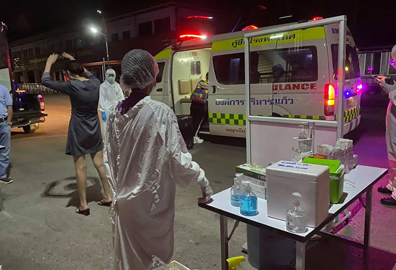 นพ.ราเชษฎ เชิงพนม ผู้อำนวยการโรงพยาบาลอรัญประเทศ เปิดเผยว่า กลุ่มคนไทยที่ลงทะเบียนแจ้งมาว่าป่วยช่วงนี้จะมาต่อเนื่องทุกวันเป็นกลุ่มๆละ ประมาณ 7-30 คน ก่อนหน้านี้จะถูกกักที่ศูนย์กักกันผู้ป่วยคนไทยแล้วทางกัมพูชาจะจัดรถรับ-ส่งคนกลุ่มนี้มายังบริเวณหน้าด่านมาถึงช่วงเย็น ค่ำ หรือบางทีก็ดึกทำให้ต้องจัดเจ้าหน้าที่ไปรอรับชุดละประมาณ 10 คน ทั้งประสานงาน คัดกรอง ตรวจหาเชื้อ และเจ้าหน้าที่แลป จากการตรวจหาเชื้อพบว่ากลุ่มนี้ส่วนใหญ่จะพบเชื้อโควิด-19 ต้องเข้ารับเข้ารักษาในโรงพยาบาลทันที