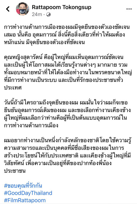 “ฟิล์ม รัฐภูมิ” ส่งจดหมายลาออกสมาชิกพรรคเพื่อไทยแล้ว มีผลวันนี้ โดยไม่ได้ระบุสาเหตุ