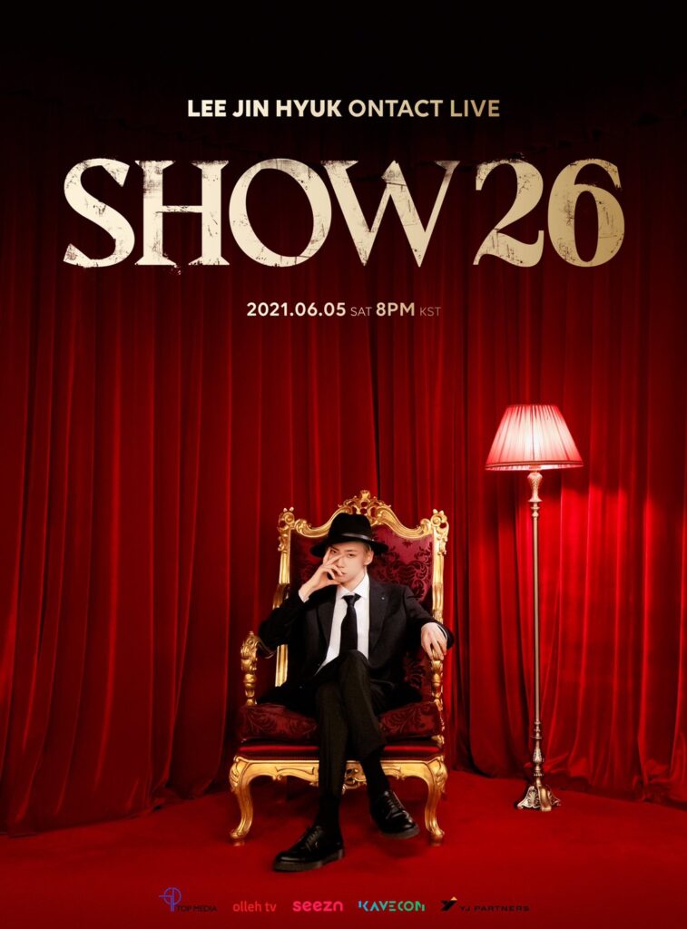 โดยอีเว้นท์นี้จะถ่ายทอดผ่านทางแพลตฟอร์มOfficial Twitter ของ Seezn และ KAVECON ทั้งนี้ แฟนๆ ที่เข้าร่วมในกิจกรรมครั้งนี้ยังมีโอกาสลุ้นรับของขวัญสุดเซอร์ไพรส์จากหนุ่ม อีจินฮยอกผ่านการจับสลากอีกด้วย! ‘LEE JIN HYUK ONTACT LIVE [SHOW26]’ เจ้าภาพ:T.O.P. Media,จัดงานโด:YJ Partners สามารถรับชมได้ทางOlleh tv,Seezn และ KAVECON ในวันที่ 5 มิถุนายน2564 เวลา 20:00น. (เวลาประเทศเกาหลี)