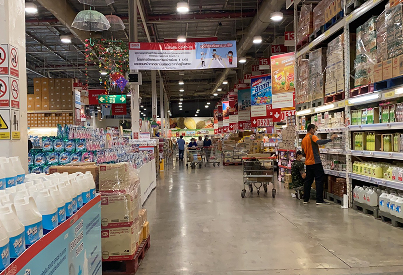 ผู้สื่อข่าวลงพื้นที่ติดตามการจับจ่ายสินค้าที่ห้างสรรพสินค้า แม็คโคร ลาดพร้าว หลังสำนักงานเขตบางกะปิ ออกคำสั่งของเจ้าพนักงานควบคุมโรคติดต่อ แจ้งปิดเป็นเวลา 3 วัน ตั้งแต่วันที่ 28-30 พ.ค.64 เนื่องจากพบว่ามีผู้ติดเชื้อไวรัสโควิด-19 ภายในศูนย์ และล่าสุด ได้กลับมาเปิดให้บริการตามปกติแล้ว โดยเมื่อเวลา 14.30 น. มีลูกค้ามาใช้บริการไม่มากนัก