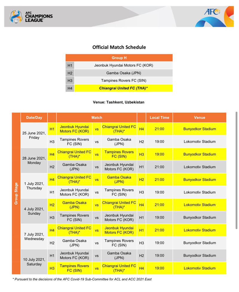 โดย แดกู เอฟซี จะเข้าไปเล่นในกลุ่ม I ส่วน เชียงราย ยูไนเต็ด จะไปอยู่ในกลุ่ม H ที่มี ชุนบุก ฮุนได (เกาหลีใต้), กัมบะ โอซาก้า (ญี่ปุ่น) และ แทมปิเนส โรเวอร์ (สิงคโปร์) โดยแข่งขันที่ประเทศอุซเบกิสถาน เริ่ม 25 มิถุนายน – 10 กรกฎาคมนี้