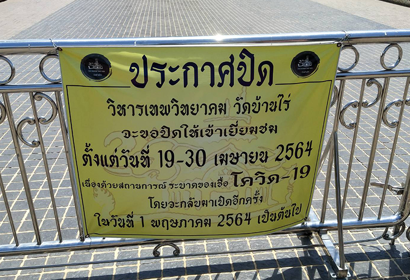 วิหารเทพวิทยาคม วัดบ้านไร่ โคราชติดป้ายปิดงดเข้าชมแล้ว หลังโควิด-19 ระลอกใหม่ระบาดหนัก