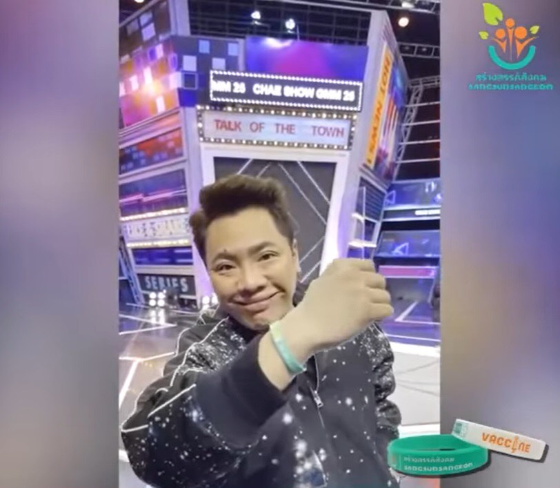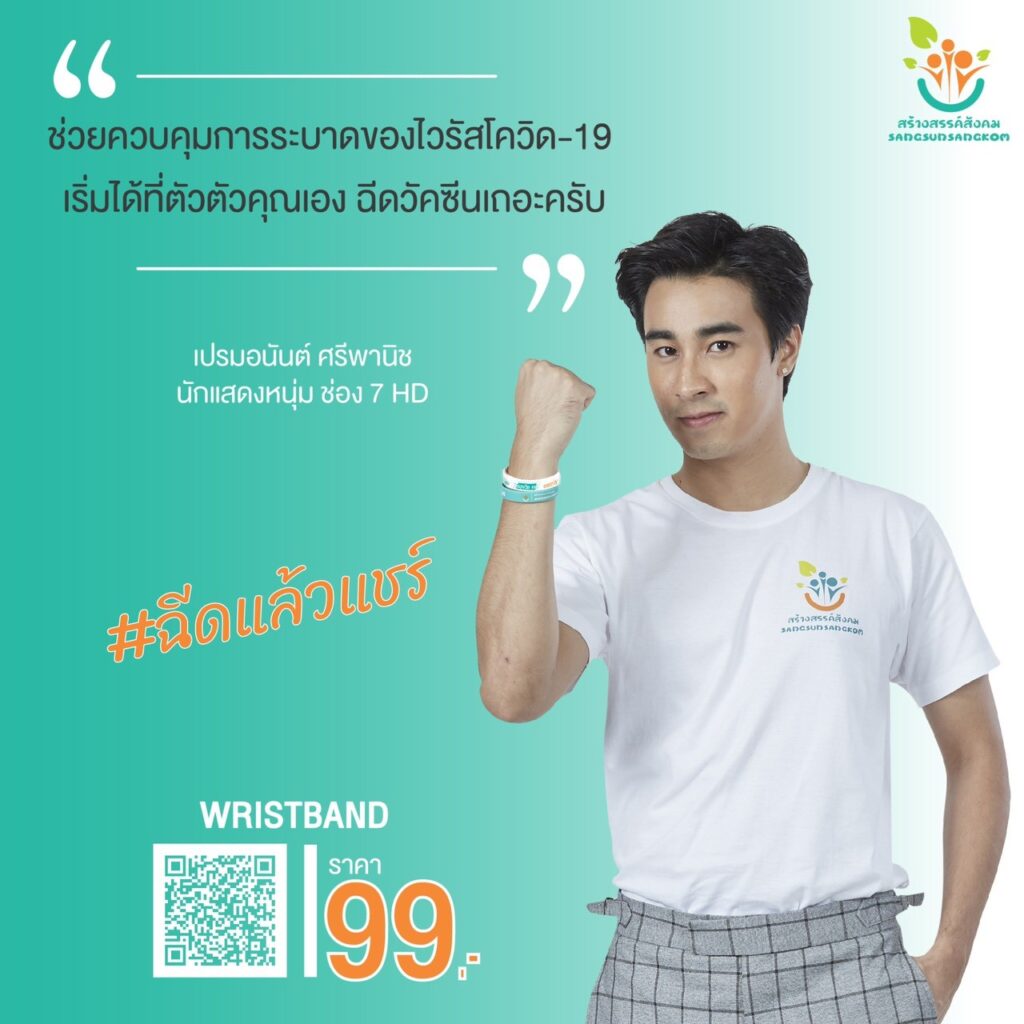 นอกจากนี้ทางโครงการ สร้างสรรค์สังคม ยังได้เล็งเห็นความสำคัญ ของการฉีดวัคซีนป้องกันเชื้อไวรัสโควิด 19 จึงจัดเป็นแคมเปญ “ฉีดแล้วโชว์ ฉีดแล้วแชร์” ด้วยการให้ผู้ที่ฉีดวัคซีน ได้ร่วมกันสนับสนุน และร่วมกันใส่ “ริสแบนด์ i got my covid 19 vaccine” ในราคาเส้นละ 99 บาท เพื่อเป็นสัญลักษณ์แห่งความปลอดภัย และการอยู่ร่วมกันในสังคมอย่างมั่นใจ ว่าคุณเป็นผู้ที่ได้รับการฉีดวัคซีนป้องกันโควิด 19 เป็นที่เรียบร้อยแล้ว