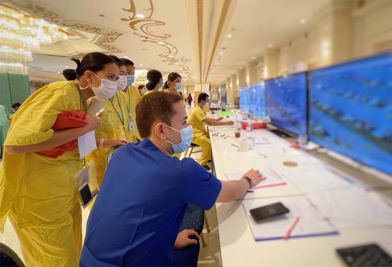 ทีมแพทย์จะใช้โน้ตบุ๊กคอมพิวเตอร์ ทำการรักษาผ่านระบบแพทย์ทางไกล (telemedicine) มีการรีโมทเข้ามารักษา หรือการให้ข้อมูลผ่านแอปพลิเคชัน LINE พร้อมทั้งมีการจัดพยาบาลที่เข้าไปติดตามดูแลผู้ป่วย
