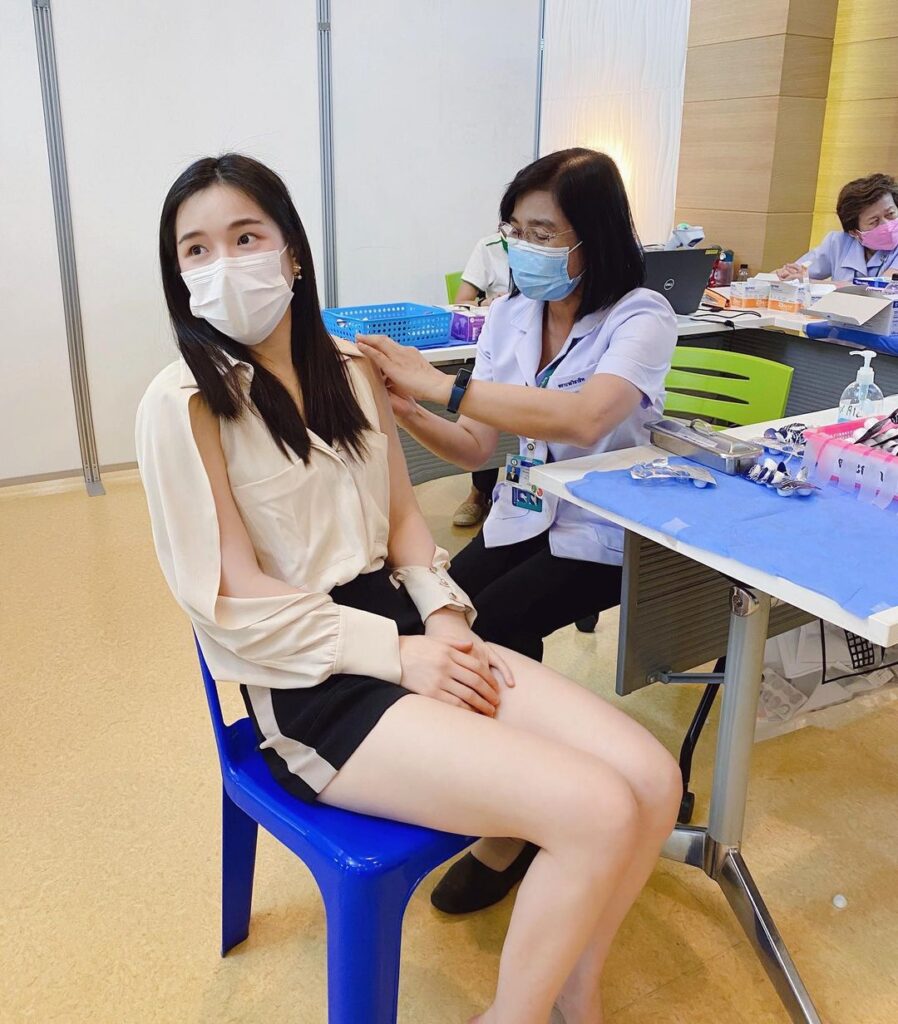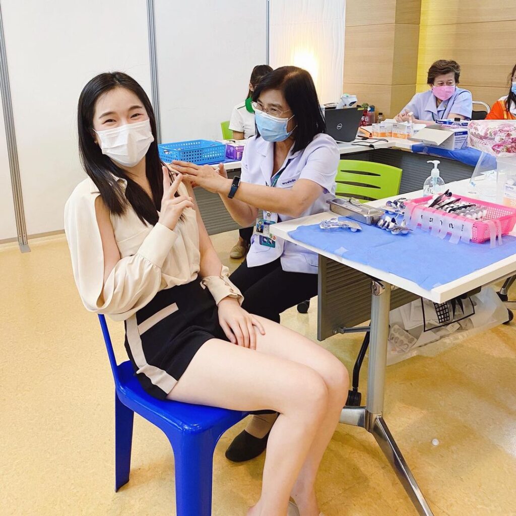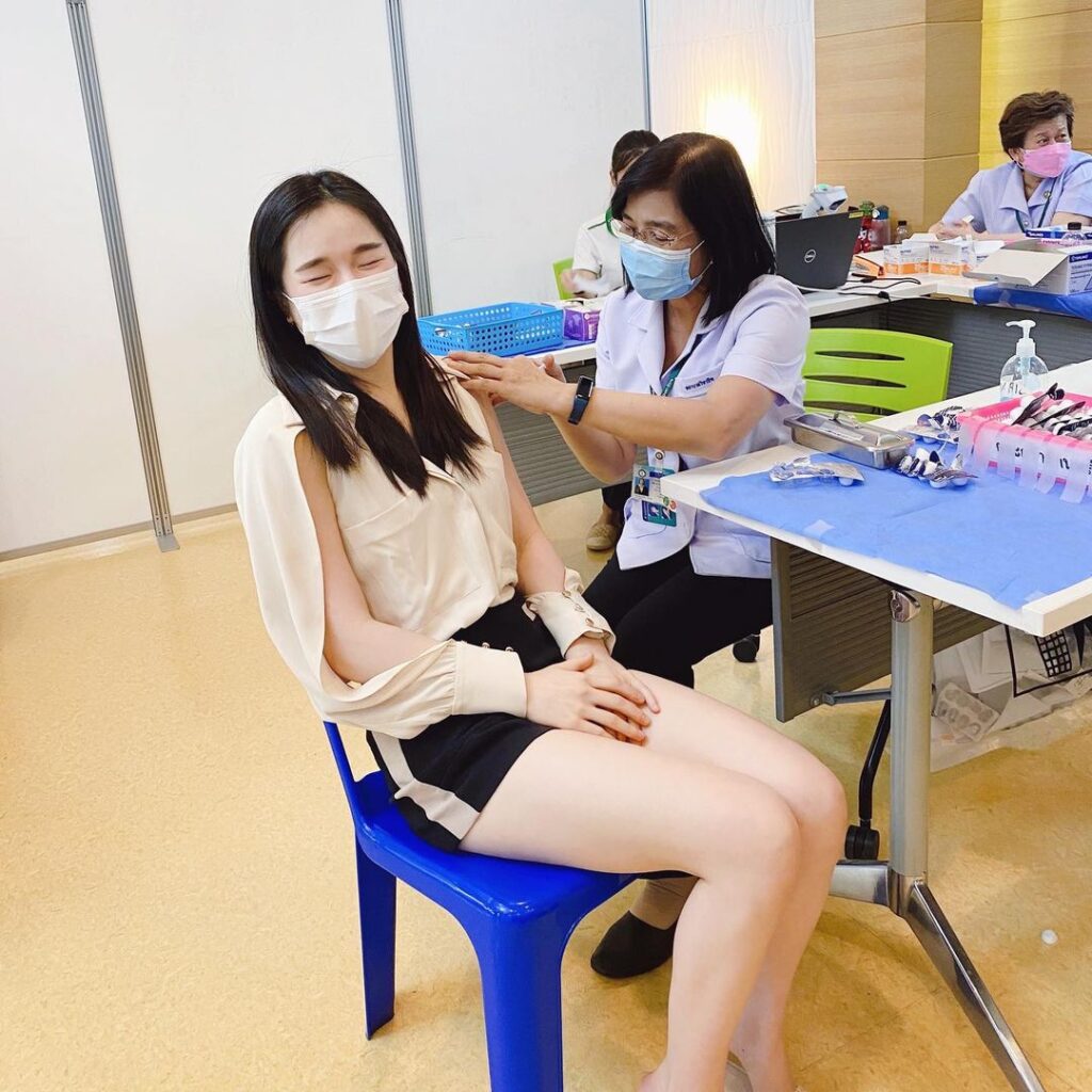 โดยสาวปันปัน ได้โพสต์รูปขณะเข้ารับการฉีดวัคซีนเข็มที่ 2 พร้อมกับระบุว่า “ ฉีดครบแล้วสองโดส มาอัพเดตอาการ การฉีด sinovac ค่า 💉