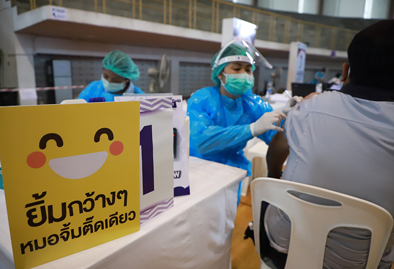 จุดฉีดวัคซีนมาตรา 33 ที่มหาวิทยาลัยเกษตรศาสตร์คึกคัก ผู้ประกันตนทยอยเข้ารับวัคซีน รองรับได้ 1,000 คนต่อวัน