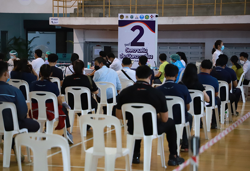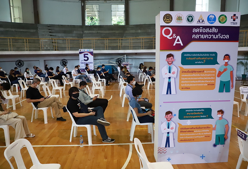 จุดฉีดวัคซีนมาตรา 33 ที่มหาวิทยาลัยเกษตรศาสตร์คึกคัก ผู้ประกันตนทยอยเข้ารับวัคซีน รองรับได้ 1,000 คนต่อวัน