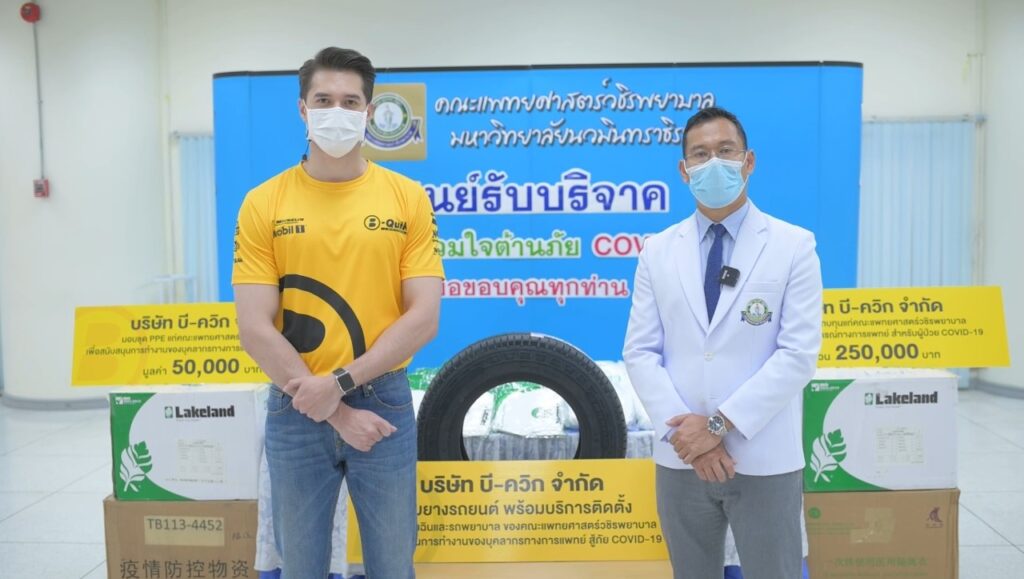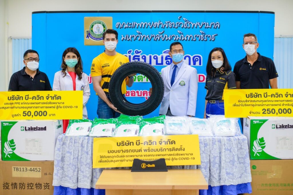 มิกค์ ทองระย้า ร่วมด้วย ผู้บริหาร บี-ควิก ปันน้ำใจสู้ภัย COVID-19 บริจาคอุปกรณ์ทางการแพทย์ พร้อมมอบยางรถยนต์ สำหรับรถพยาบาล และรถฉุกเฉิน ให้กับหน่วยงานทางการแพทย์
