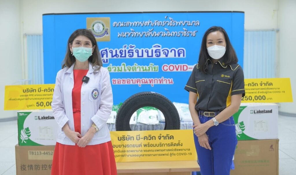 บี-ควิก ศูนย์บริการรถยนต์ครบวงจร ร่วมบริจาคสมทบทุน มูลค่ารวม 300,000 บาท เพื่อจัดหาอุปกรณ์ทางการแพทย์, ชุด PPE และยางรถยนต์ พร้อมบริการติดตั้งให้กับรถฉุกเฉิน และรถพยาบาล เพื่อสำหรับช่วยเหลือผู้ป่วย COVID-19 โดยมี คุณบุศรารัตน์ อัสสรัตนกุล ผู้บริหารสูงสุดฝ่ายปฏิบัติการ บริษัท บี-ควิก จำกัด, มิกค์ ทองระย้า พรีเซนเตอร์ของ บี-ควิก เป็นผู้ส่งมอบให้กับ ผศ.นพ. จักราวุธ มณีฤทธิ์ คณบดีคณะแพทยศาสตร์วชิรพยาบาล, รศ.ดร. เมษัณฑ์ ปรมาธิกุล ผู้ช่วยศาสตราจารย์คณะแพทยศาสตร์วชิรพยาบาล และ รศ.พญ.ธนันดา ตระการวนิช รองอธิการบดี มหาวิทยาลัยนวมินทราธิราช เป็นผู้รับมอบ ณ ลานอเนกประสงค์ ชั้น 6 อาคารเพชรรัตน์ มหาวิทยาลัยนวมินทราธิราช