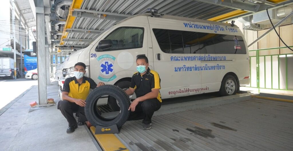 โดยงานนี้ คุณบุศรารัตน์ อัสสรัตนกุล ผู้บริหารสูงสุดฝ่ายปฏิบัติการ บริษัท บี-ควิก จำกัด เผยว่า “บี-ควิก ได้คำนึงถึงภาวะวิกฤติของโรคติดต่อร้ายแรง COVID-19 ที่กำลังกระทบกับการใช้ชีวิตของชาวไทยในปัจจุบัน และโดยเฉพาะทาง บี-ควิก จึงได้ร่วมสมทบทุน และมอบอุปกรณ์ทางการแพทย์ ให้แก่โรงพยาบาลศูนย์บริการการแพทย์นนทบุรี และคณะแพทยศาสตร์วชิรพยาบาล และที่สำคัญเลย ด้วยความที่ บี-ควิก เป็นผู้นำในตลาดศูนย์บริการรถยนต์ครบวงจร เราจึงอยากใช้ความเชี่ยวชาญของเราให้เกิดประโยชน์ ด้วยการมอบยางรถยนต์ พร้อมบริการติดตั้งให้กับรถฉุกเฉิน และรถพยาบาลของคณะแพทยศาสตร์วชิรพยาบาล เพื่อสนับสนุนการทำงานของบุคลากรทางการแพทย์ในการบรรเทาวิกฤติ COVID-19 ครั้งนี้”