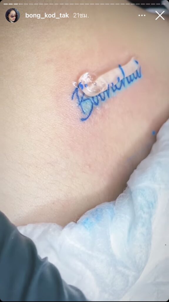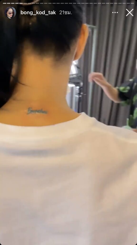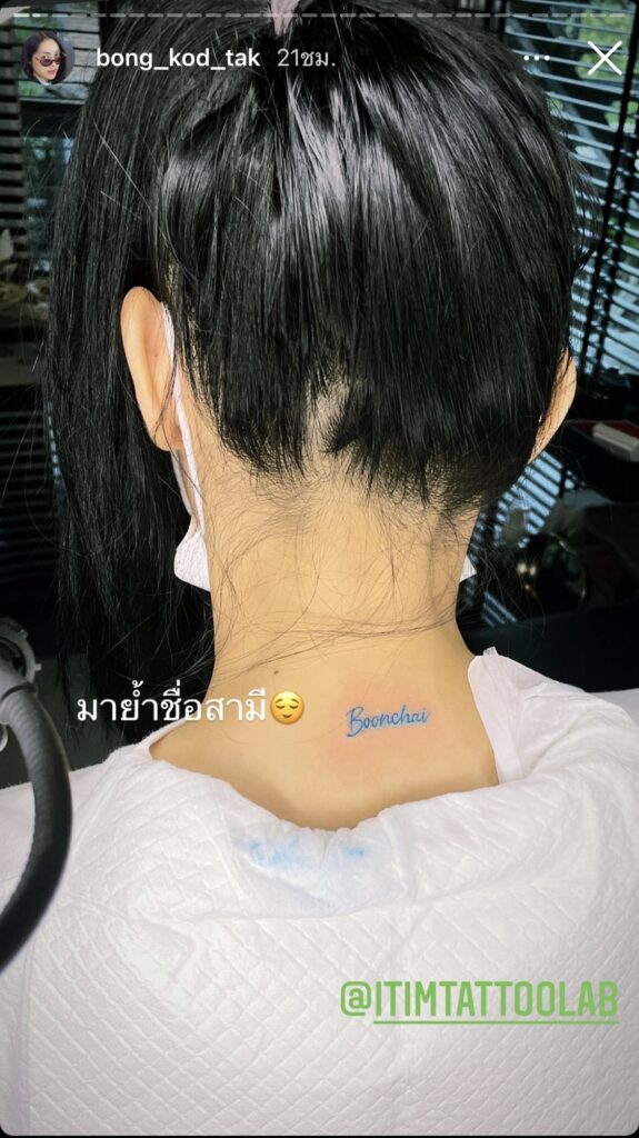 อย่างล่าสุดที่ทำเอาหลายคนแอบแซว เมื่อสาวตั๊กลงไอจีสตอรี่ ย้ำรอยสักชื่อของเจ้าสัวบุญชัย ที่เธอสักไว้หลังต้นคอเป็นภาษาอังกฤษว่า “BOONCHAI” เป็นการการันตรีความหวานและความรักของทั้งคู่ที่ดูแล้ว ทำเอาหลายคนอิจฉามากๆเลยจ้า