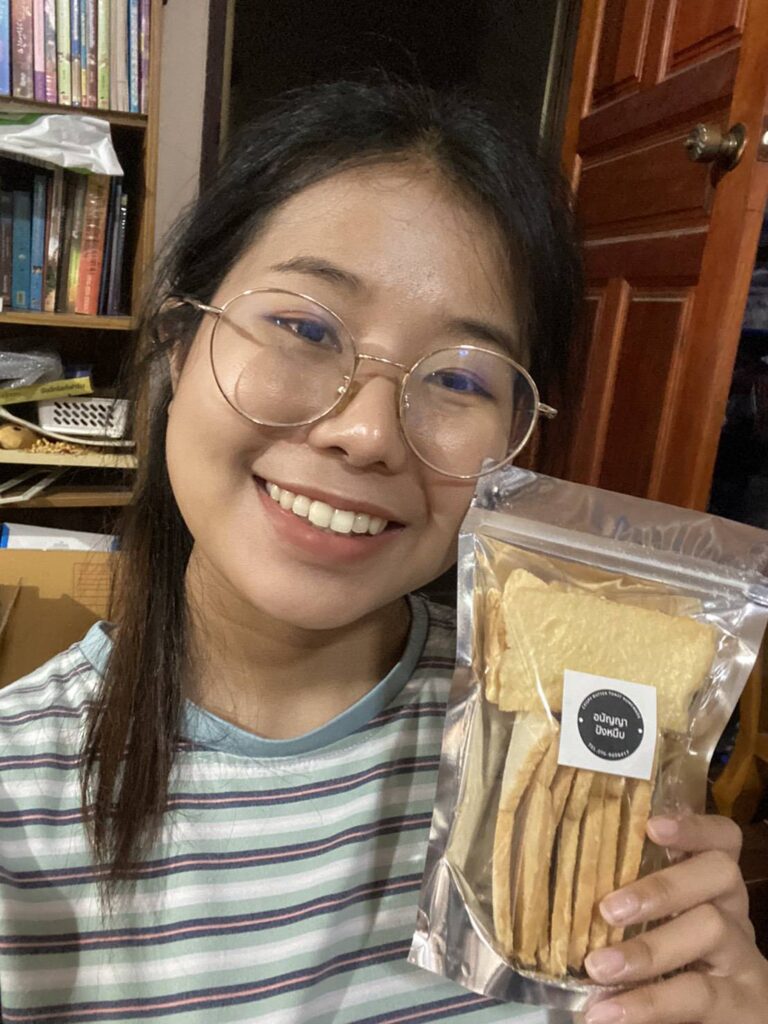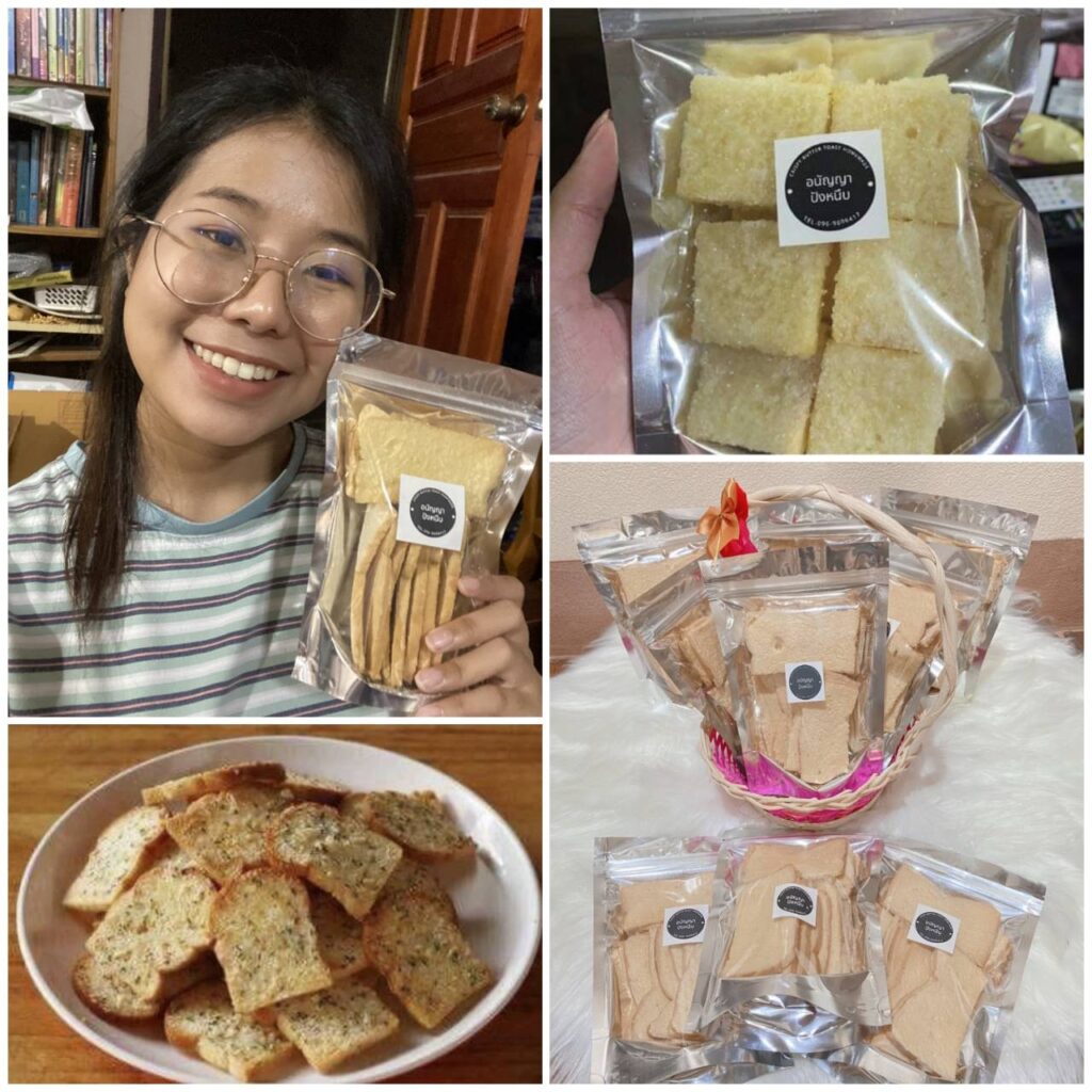 “อุ้มขายขนมปังหนึบค่ะ ชื่อว่า “อนัญญาปังหนึบ” ก็จะมี 3 รสค่ะ เป็นขนมปังเนยน้ำตาล รสโกโก้ และขนมปังกระเทียม ค่ะ ราคาถุงละ 35 บาท 3 ถุง 100 บาทค่ะ กระแสตอบรับดีค่ะ ตอนเปิดรับออเดอร์คนสั่งเยอะเลยค่ะ ที่ทำขนมปังหนึบเพราะเป็นขนมที่ชอบทานค่ะ และก็ทำไม่ยากด้วย ก็เลยทำเองหมดเลยค่ะ เป็นสูตรเฉพาะของอุ้มเลย คัดเองทุกแผ่น หนึบทุกชิ้น เข้มข้นแน่นอนค่ะ สั่งได้เลยนะคะที่ FB : อนัญญา เนตร์นิยม(อุ้ม ไมค์ทองคำ)ค่ะ นอกจากนี้อุ้มก็ฝึกสอนอยู่ด้วยค่ะ สอนภาษาอังกฤษที่โรงเรียนท่าทอง จ.พิษณุโลก สอนระดับชั้น ม.4 และ ม.6 ค่ะ แต่ตอนนี้โรงเรียนเลื่อนเปิดช่วงโควิดค่ะ ฝากถึงทุกคนรักษาสุขภาพกันด้วยกันนะคะ”