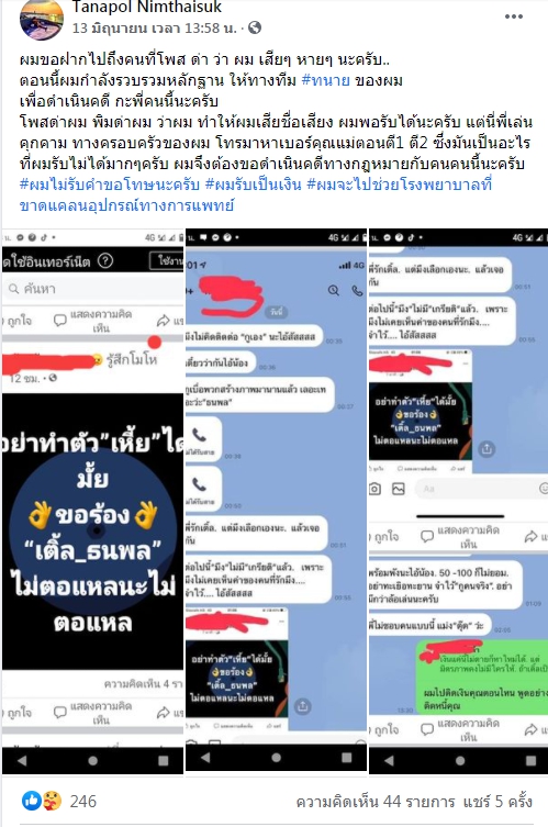 โพสต์ด่าผม พิมพ์ด่าผม ว่าผม ทำให้ผมเสียชื่อเสียง ผมพอรับได้นะครับ แต่นี่พี่เล่นคุกคาม ทางครอบครัวของผม โทรมาหาเบอร์คุณแม่ตอนตี 1 ตี2