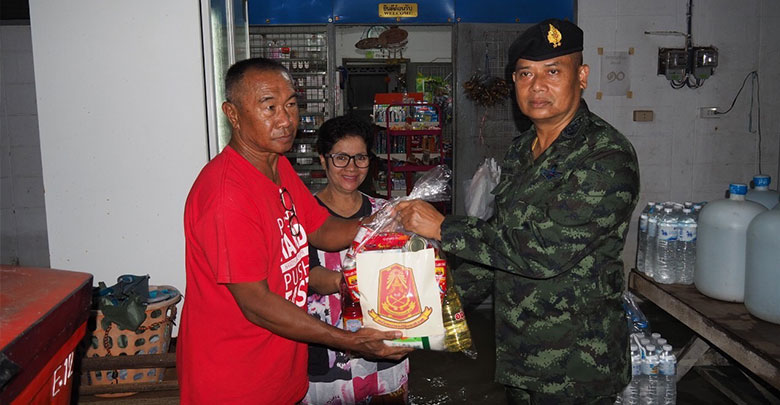 อย่างไรก็ตามสถานการณ์ล่าสุดขณะนี้ในพื้นที่ จ.นราธิวาสระดับน้ำเริ่มลดลง แต่ยังคงมีกลุ่มเมฆฝนปกคลุมอย่างต่อเนื่อง ซึ่ง พล.ต.ไพศาล ผบ.พล.ร.15/ผบ.ฉก.นราธิวาสได้กำชับให้พี่น้องประชาชนใช้ความระมัดระวังในการดำเนินชีวิตด้วยความไม่ประมาท รวมทั้งระมัดระวังสัตว์มีพิษต่างๆ ส่วนสิ่งของเครื่องใช้ที่จำเป็นให้ยกไว้ในที่สูง หากต้องการความช่วยเหลือให้แจ้งเจ้าหน้าที่ที่ดูแลพื้นที่นั้นๆโดยด่วน ต่อมาในเวลา 18.30 น.พล.ต.ไพศาล หนูสังข์ ผู้บัญชาการกองพลทหารราบที่15 / ผู้บังคับหน่วยเฉพาะกิจนราธิวาส ได้เดินทางไปยังกองพันทหารราบที่ 3 กรมทหารราบที่ 151 ค่ายกรมหลวงนราธิวาสราชนครินทร์หรือค่ายกองพันพัฒนาที่ 4 ต.มะรือโบออก อ.เจาะไอร้อง จ.นราธิวาส ที่ประสบปัญหาน้ำท่วมขังภายในบริเวณค่ายทั้งหมด โดยได้พบปะ เยี่ยมเยียนให้กำลังใจ กำลังพลและครอบครัว ที่ประสบอุทกภัย ก่อนมอบสิ่งของเครื่องอุปโภคบริโภคและเวชภัณฑ์ยารักษาโรค เพื่อบรรเทาความเดือดร้อนในเบื้องต้นให้แก่กำลังพลและครอบครัวที่ได้รับความเดือดร้อนพร้อมหาแนวทางการแก้ไขปัญหากับหน่วยงานที่เกี่ยวข้องในการระบายน้ำเป็นการเร่งด่วน เพื่อให้สถานการณ์กลับคืนสู่สภาวะปกติโดยเร็วที่สุด ทั้งนี้พล.ต.ไพศาล กล่าวว่า การช่วยเหลือ พี่น้องประชาชนที่ประสบความเดือดร้อนเป็นเรื่องสำคัญ แต่เมื่อกำลังพลรวมทั้งครอบครัวได้รับความเดือดร้อน เราจะนิ่งดูดายไม่ได้ เพราะเรา คือ “ครอบครัวเดียวกัน”