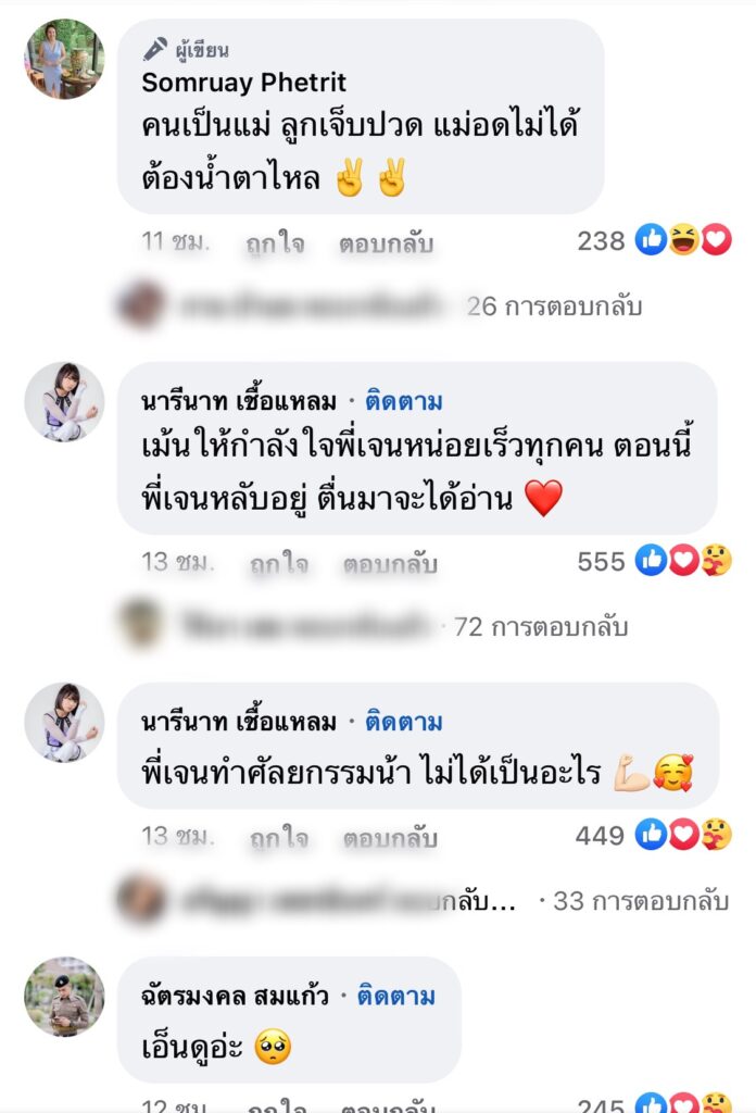 ล่าสุดทางคุณแม่ของสาวเจนนี่ ได้มีการโพสต์ภาพขณะที่สาวเจนนี่กำลังนอนพักรักษาตัวหลังจากเข้ารับการศัลยกรรม พร้อมกับบอกว่า “สู้ๆนะ คนเก่งของแม่ เดี๋ยวก็หายแล้ว ❤️อยู่ข้างๆนะคะ”