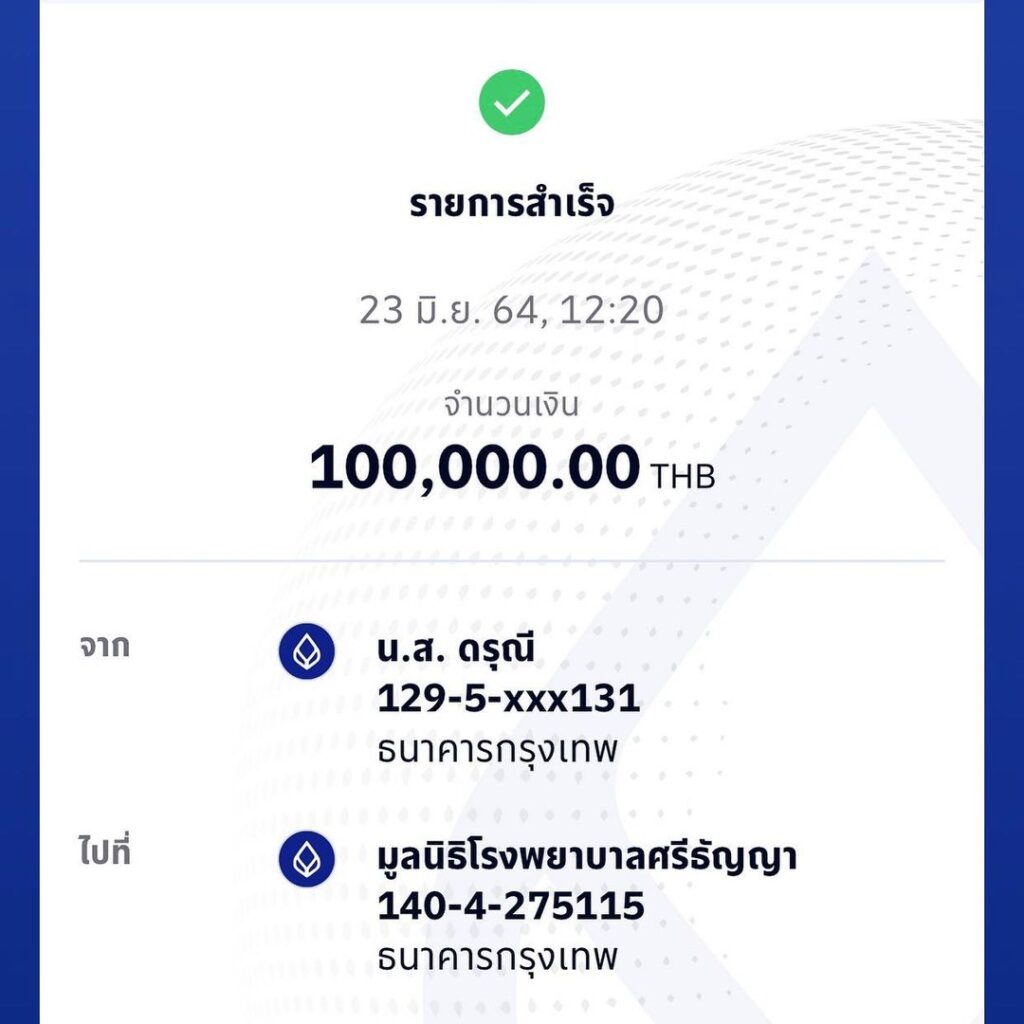 เรียกว่าทั้งสวยและใจดี สำหรับดาราสาวอารมณ์ดี เป็กกี้ ศรีธัญญา ที่ล่าสุดถือโอกาสในวันคล้ายวันเกิดในปีนี้ บริจาคเงิน 1 แสนบาทให้กับมูลนิธิโรงพยาบาลศรีธัญญา โดยเจ้าตัวได้โพสต์ภาพสลิปการโอนเงินพร้อมกับแคปชั่นที่ระบุว่า