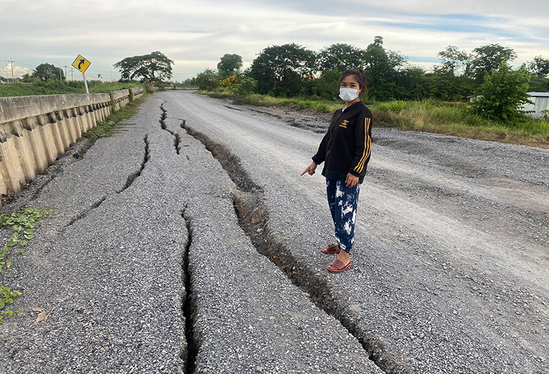 ชาวบ้านคลอง13โวยถนนทางหลวงชนบทพังยับ