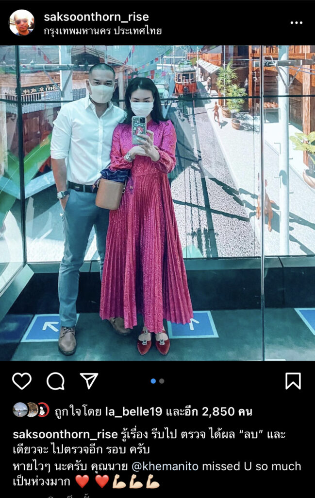 หลังจากดาราสาวแพนเค้ก – เขมนิจ จามิกรณ์ โพสต์ข้อความลงอินสตาแกรมส่วนตัวแจ้งข่าวผลตรวจเชื้อโควิด -19 เป็นบวก และแจ้งไทม์ไลน์ 7 วัน ไปก่อนหน้านี้