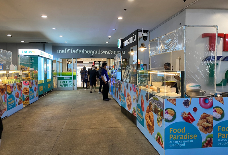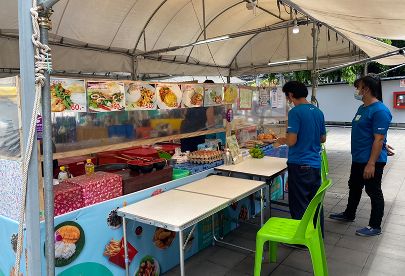 ร้านขายอาหาร ย่านลาดพร้าว โอด มาตรการรัฐ ห้ามนั่งกินที่ร้าน ฉุดยอดขาย ขณะปชช.บางส่วนใช้พื้นที่นั่งพักข้างห้างเป็นที่กิน
