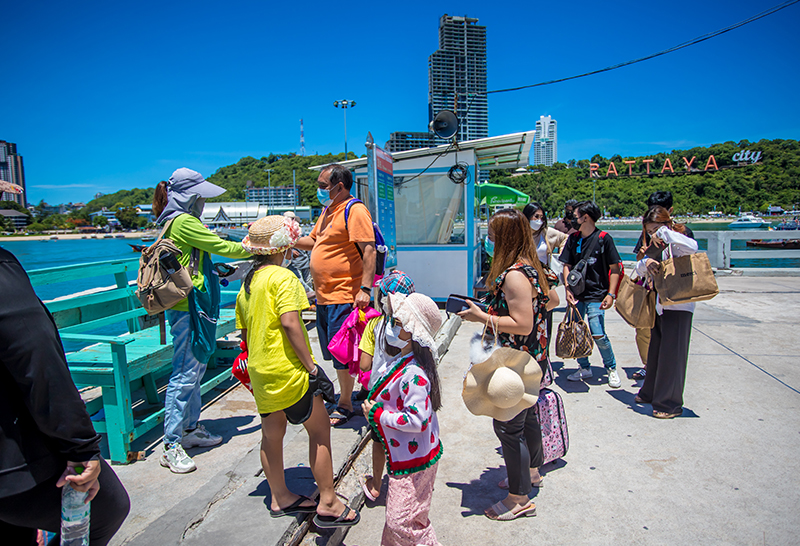 ผู้สื่อข่าวรายงานว่า ซึ่งในส่วนเมืองพัทยานั้นในช่วงนี้บรรยากาศที่บริเวณท่าเทียบเรือแหลมบาลีฮาย พัทยา มีนักท่องเที่ยวเดินทางไปเที่ยวยังเกาะล้านอย่างคึกคัก โดยนักท่องเที่ยวชาวไทยและชาวต่างชาติเดินทางมาทั้งแบบครอบครัว และเป็นกลุ่มเพื่อน เพื่อที่จะเดินทางไปพักผ่อนบนเกาะล้าน โดยตั้งแต่ประตูทางเข้าจะมีเจ้าหน้าที่จากเมืองพัทยา คอยอำนวยความสะดวกพร้อมกับตรวจบัตรประจำตัวประชาชน หรือพาสปอร์ต ก่อนที่จะเดินทางขึ้นเรือโดยสาร หรือเรือสปีดโบ๊ท ซึ่งก็สร้างความคึกคักแม้กระแสผู้ติดเชื้อโรคโควิดพุ่งสูงขึ้นจนมีมาตรการงดจำหน่ายสุราตั้งแต่ 20.00 น จนถึง 04.00 น โดยมีผลบังคับใช้ในวันนี้ แต่ยังไงก็ตามเสียงผู้ประกอบการต่างๆในพัทยาก็อยากเรียกร้องให้มีการเปิดเมืองพัทยาแบบ ภูเก็ต แซนบ็อกซ์ โดยเฉพาะที่เกาะล้านที่มีการฉีดวัคซีนแล้วในเกาะล้านเกิน 70 เปอร์เซ็นต์