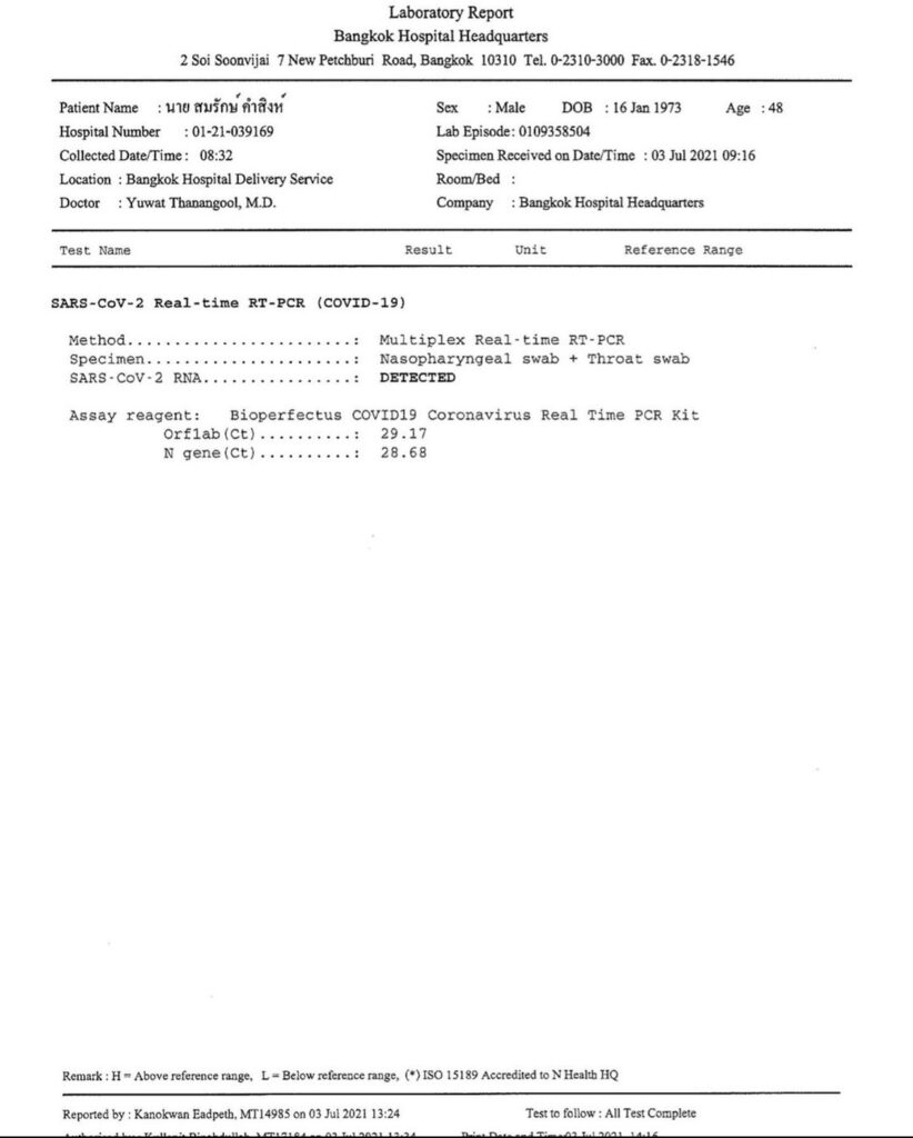 โดยในช่วงเช้าของวันที่ 3 ก.ค. ตงตง พร้อมด้วย ครอบครัว “คำสิงห์” ได้เดินทางมายัง สตูดิโอ ด้านหลังตึก GMM GRAMMY เพื่อเข้าทำการ SWAP เพื่อหาเชื้อล่วงหน้า ก่อนจะมีคิวเข้าอัดรายการ เกลือวันเด้อ ในวันอาทิตย์ที่ 4 ก.ค. แต่ ในช่วงเย็นของวันที่ 3 ก.ค. 2564 สมรักษ์ คำสิงห์ ได้รับแจ้งจางทางโรงพยาบาลว่า “พบเชื้อ COVID-19” แต่ผลตรวจของ ตงตง และคนอื่นๆ มีผลเป็นลบ คือ ไม่พบเชื้อCOVID-19 ทั้งนี้ทำให้ ตงตง อยู่ในกลุ่มเสี่ยงสูง และเพื่อเป็นการป้องกันการแพร่ระบาดในวงกว้าง ตงตง จึงประกาศทำการกักตัว 14 วัน เพื่อเฝ้าสังเกตุอาการ และรอไปตรวจหาเชื้ออีกครั้ง ทั้งนี้เจ้าตัวได้ โพสต์ IG ชี้แจงถึงรายละเอียดต่างๆ และได้โพสต์ภาพผลตรวจ ซึ่งระบุผลตรวจออกมาเป็น ลบ และ หากมีข้อมูลเพิ่มเติม จะแจ้งให้ทราบอีกครั้งทันที