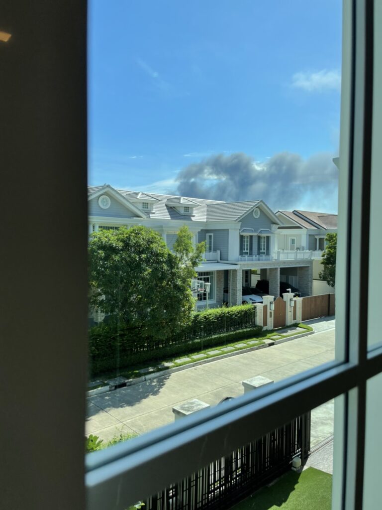 “อันนี้ก็เป็นอีกเรื่องความโชคดีของบ้านฟลุค ที่กลุ่มควันไปอีกทางหนึ่ง ซึ่งไม่ได้มาทางบ้านฟลุคเลย แต่เราก็ยังไว้ใจไม่ได้ เพราะลมอาจเปลี่ยนทิศตีกลับมาทางบ้านเราก็ได้ ฟลุคเลยไม่อยากให้ครอบครัวต้องมาเสี่ยงครับ ยิ่งเรามีลูกเล็ก และถ้าหากมีอะไรรุนแรงขึ้นอีก ออกมาตอนนั้นคงไม่ทันแน่นอน เพราะรถติดมากด้วย