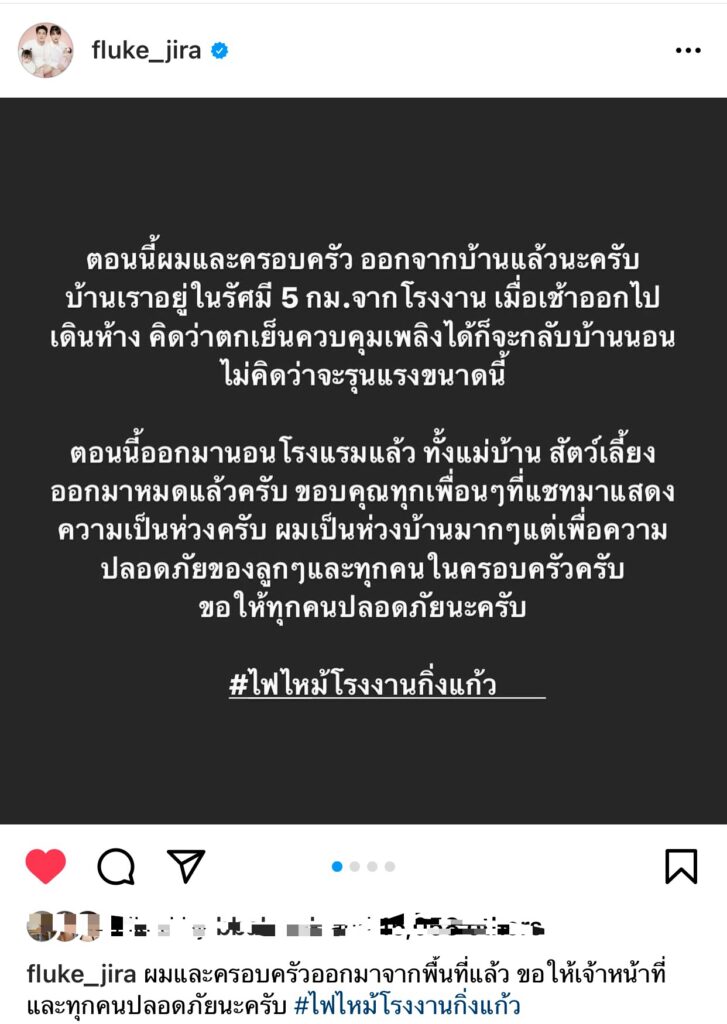 “ฟลุค-จิระ”เล่านาทีระทึกพาครอบครัวอพยพด่วน ใกล้โรงงานระเบิด