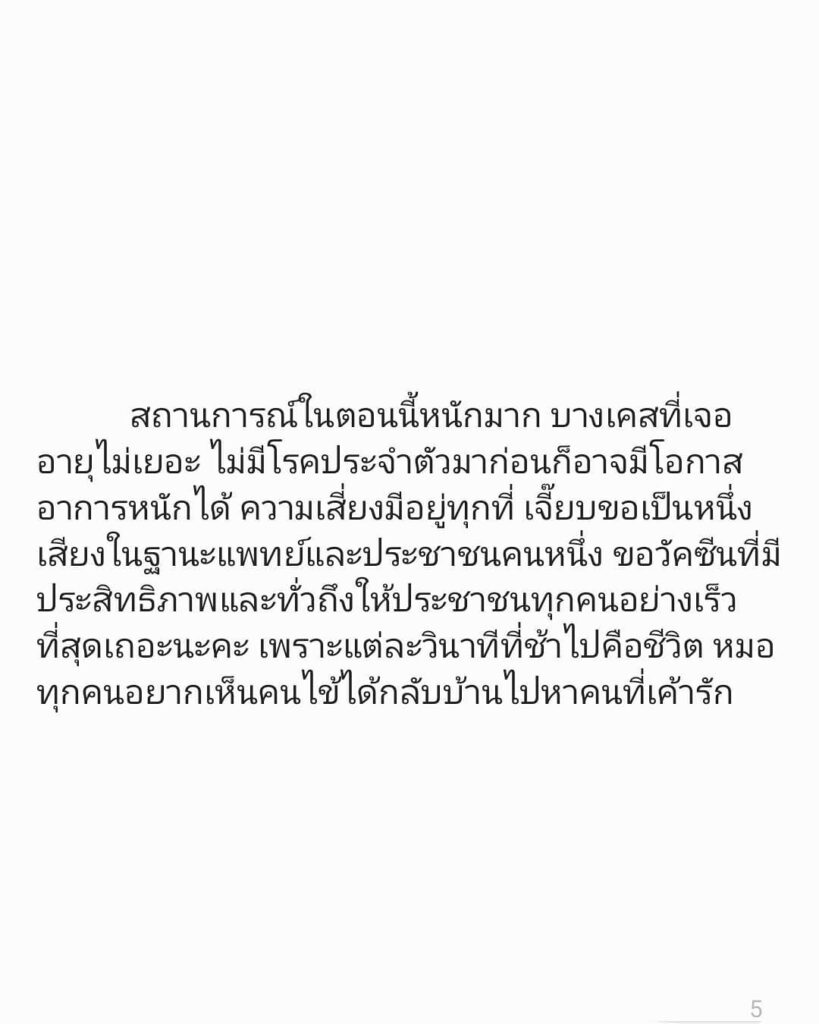“หมอเจี๊ยบ” วอนรัฐหาวัคซีนที่ดีให้ประชาชน เผยสถานการณ์แย่และหนักกว่าที่ผ่านมาเป็นพันเท่า