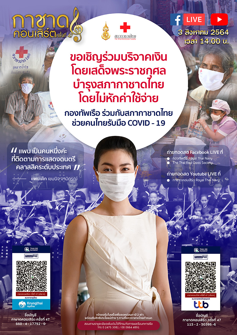 กองทัพเรือ ร่วมกับ สภากาชาดไทย เชิญชมการแสดงดนตรีแนวคลาสสิกแบบออนไลน์ ในงานกาชาดคอนเสิร์ต ครั้งที่ 47