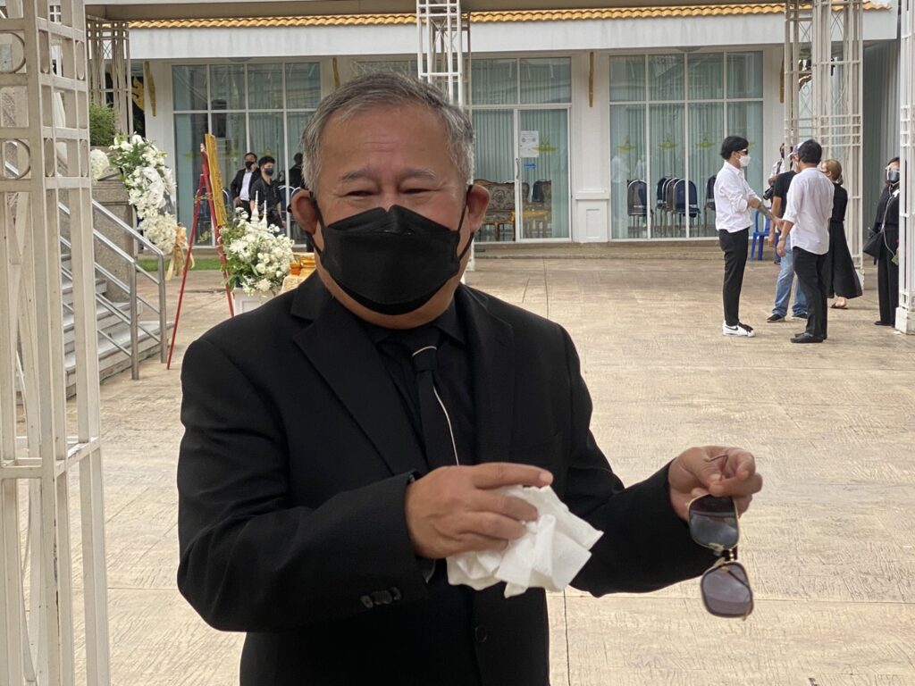 “คือผมเชื่อว่าคู่นี้ 70 ปีที่เขาเดินเกี่ยวแขนกัน 70 ปีเขาไม่เคยห่างจากกัน (ร้องไห้) เขาห่างกันแค่ 7 วันที่ผ่านมาเนี่ย ผมคิดว่าพ่อไปสวรรค์ แม่มารับพ่อไปสวรรค์ ผมอยากจะบอกว่าพ่อกับแม่ในชาติหน้า ถ้าผมได้เกิด ผมขอเกิดเป็นลูกพ่อกับแม่ ไม่ว่าเราจะจนตอนสมัยเด็กๆ จนมากแค่ไหนผมก็จะไปเกิดกับพ่อกับแม่ (ร้องไห้หนัก) ผมขอแค่นี้”